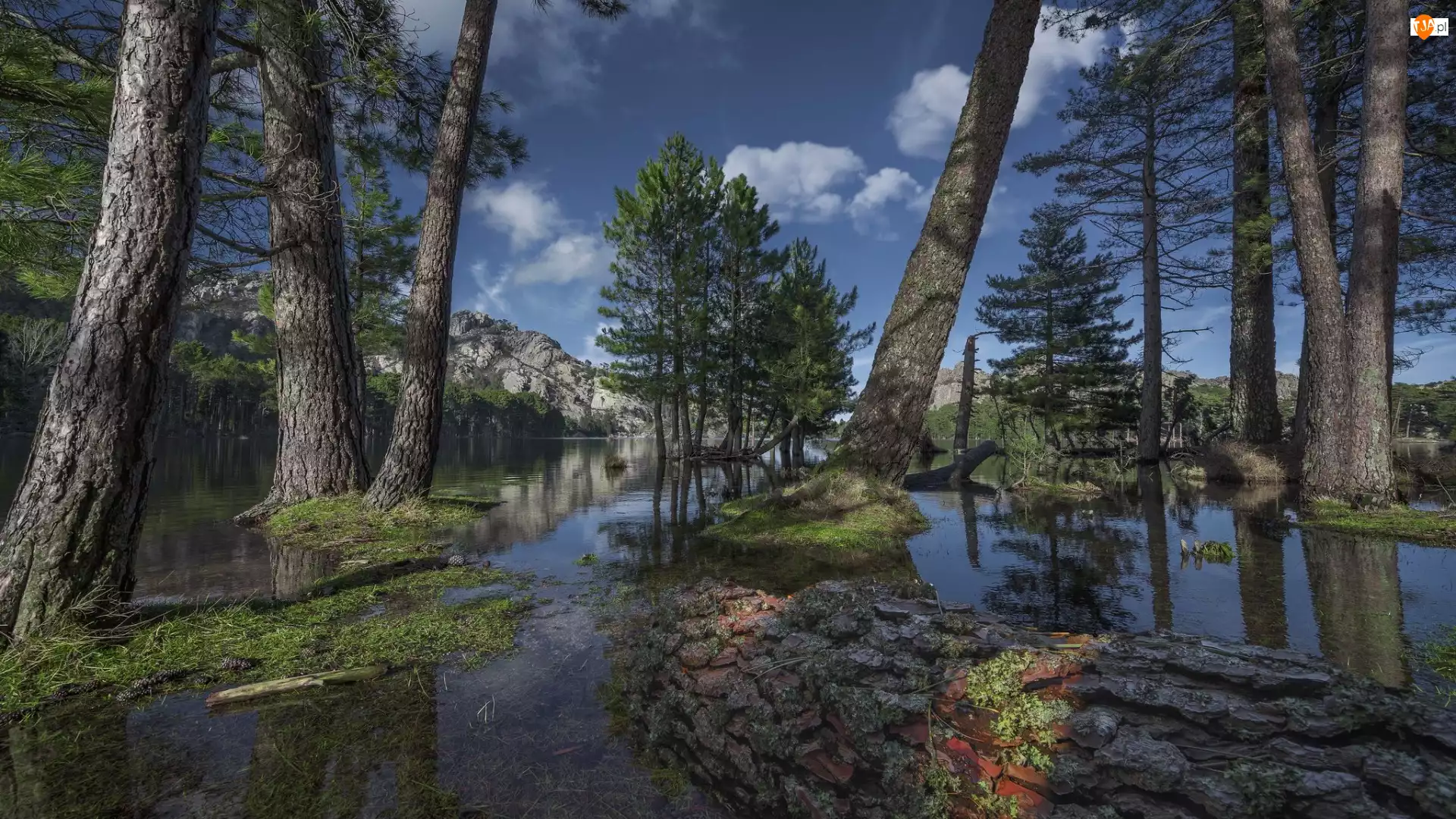 Miejscowość L-Ospedale, Gmina Porto-Vecchio, Las, Jezioro L-Ospedale, Drzewa, Francja, Korsyka