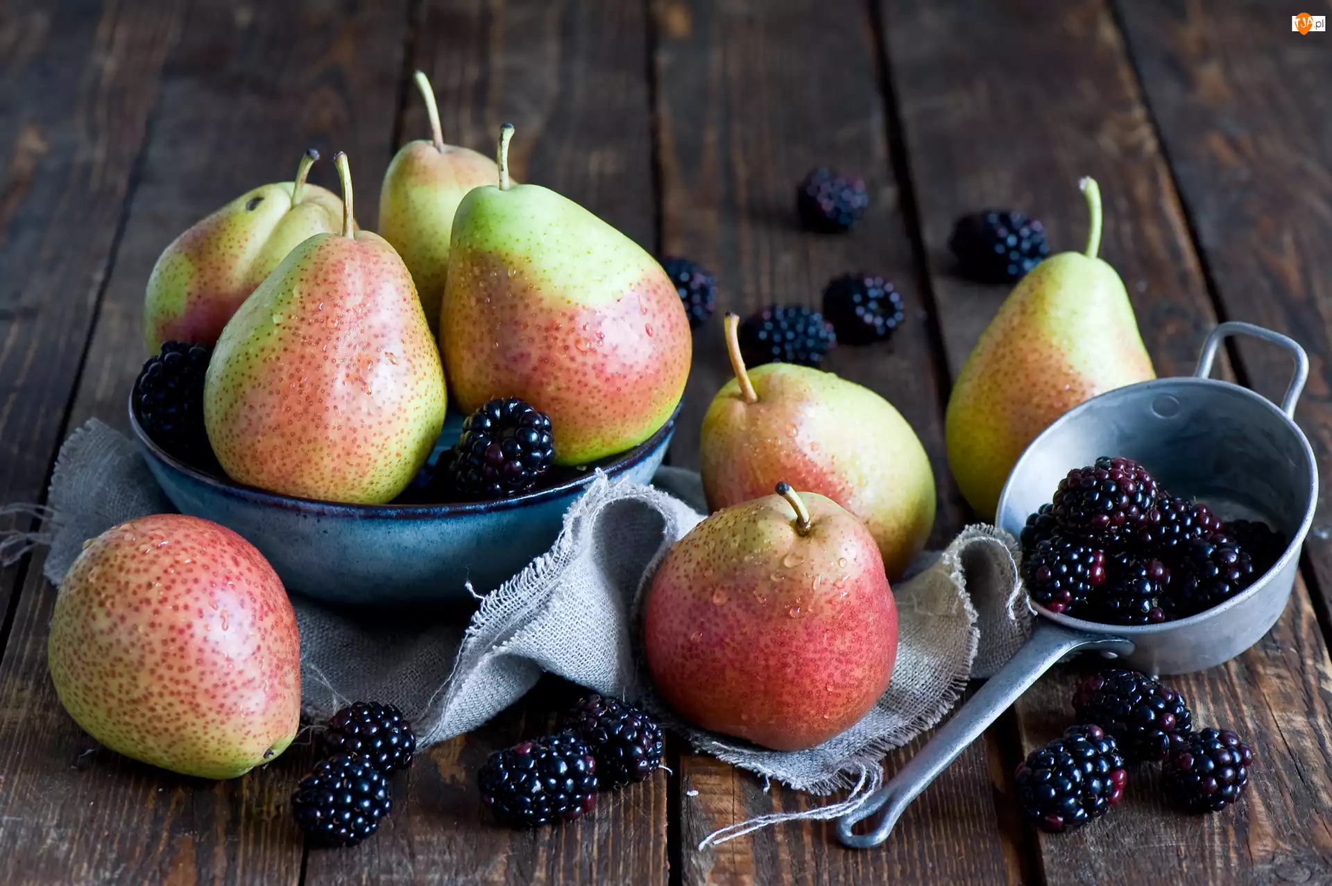 Jeżyny i gruszki w misce