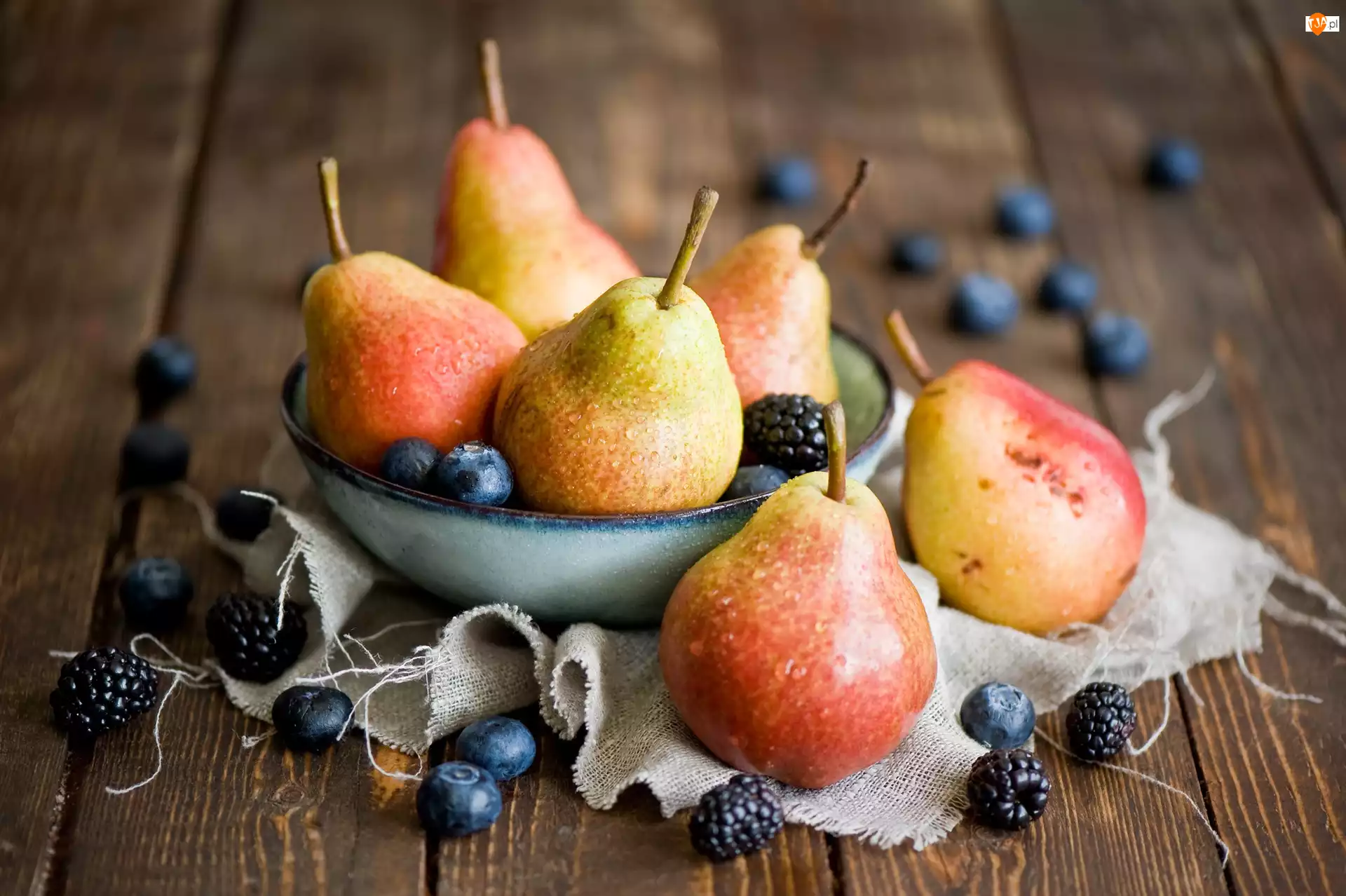 Jeżyny, Materiał, Gruszki, Miseczka, Jagody