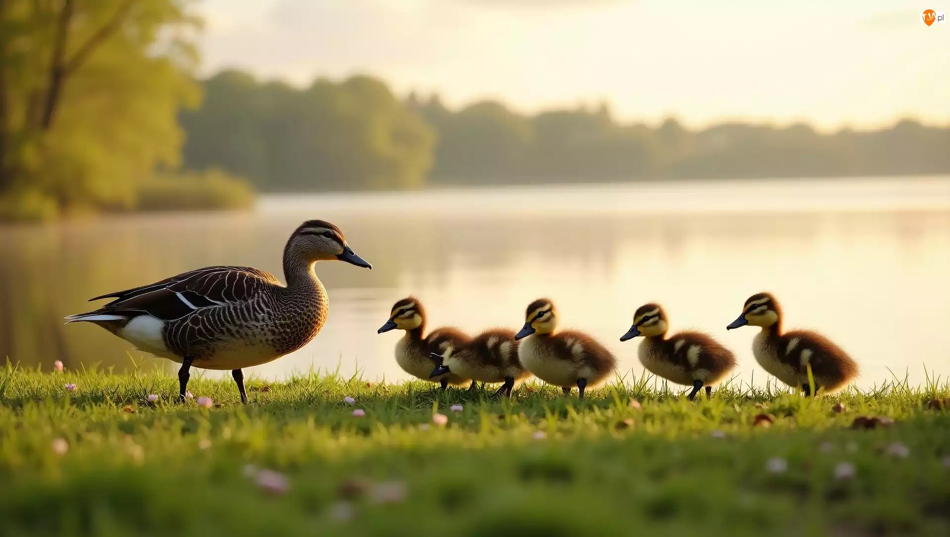 Grafika AI, Kaczka, Kaczuszki, Staw