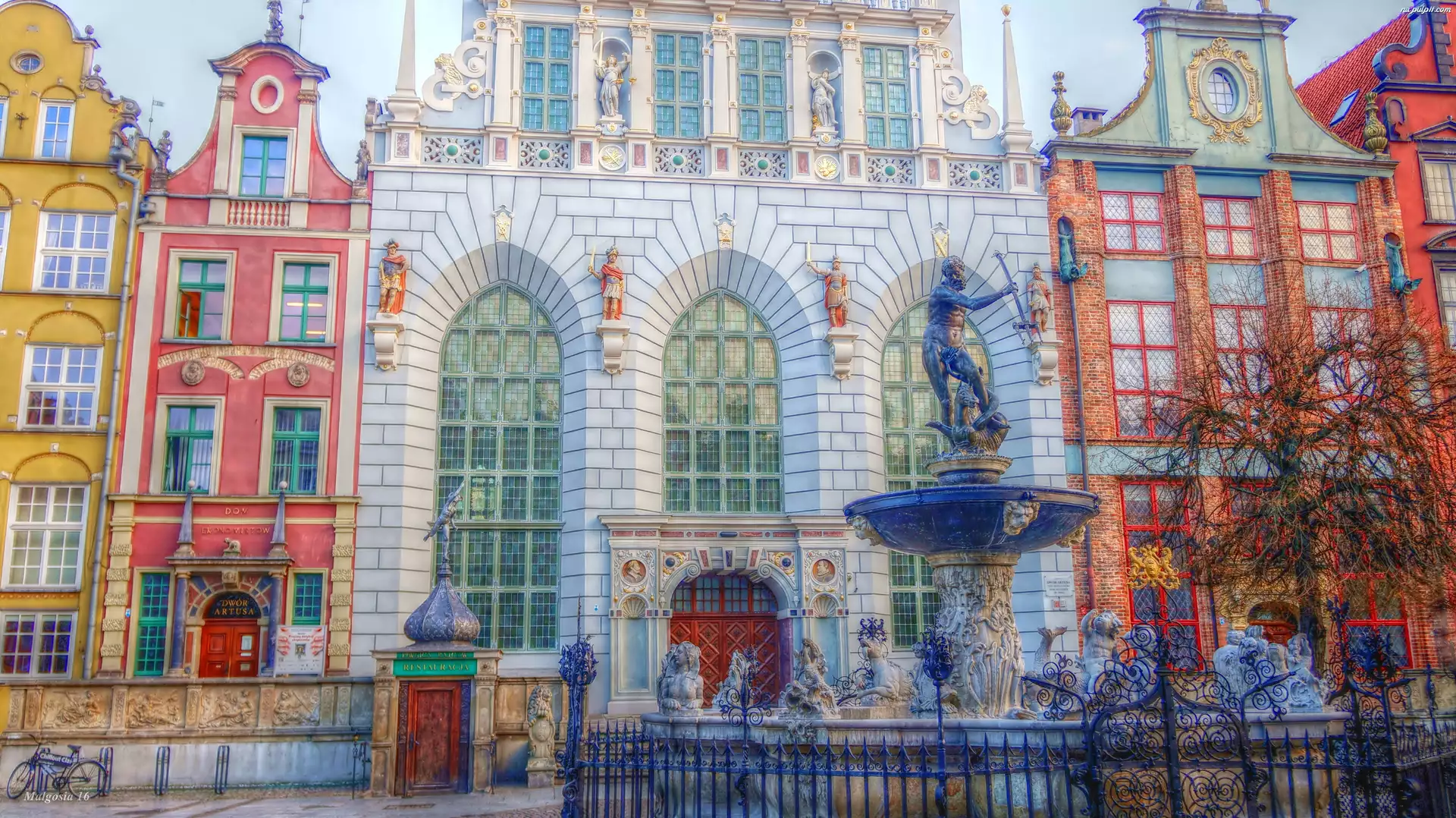 Kamienice, Posejdon, Dwór Artusa, Gdańsk, HDR, Posąg, Zabytkowe