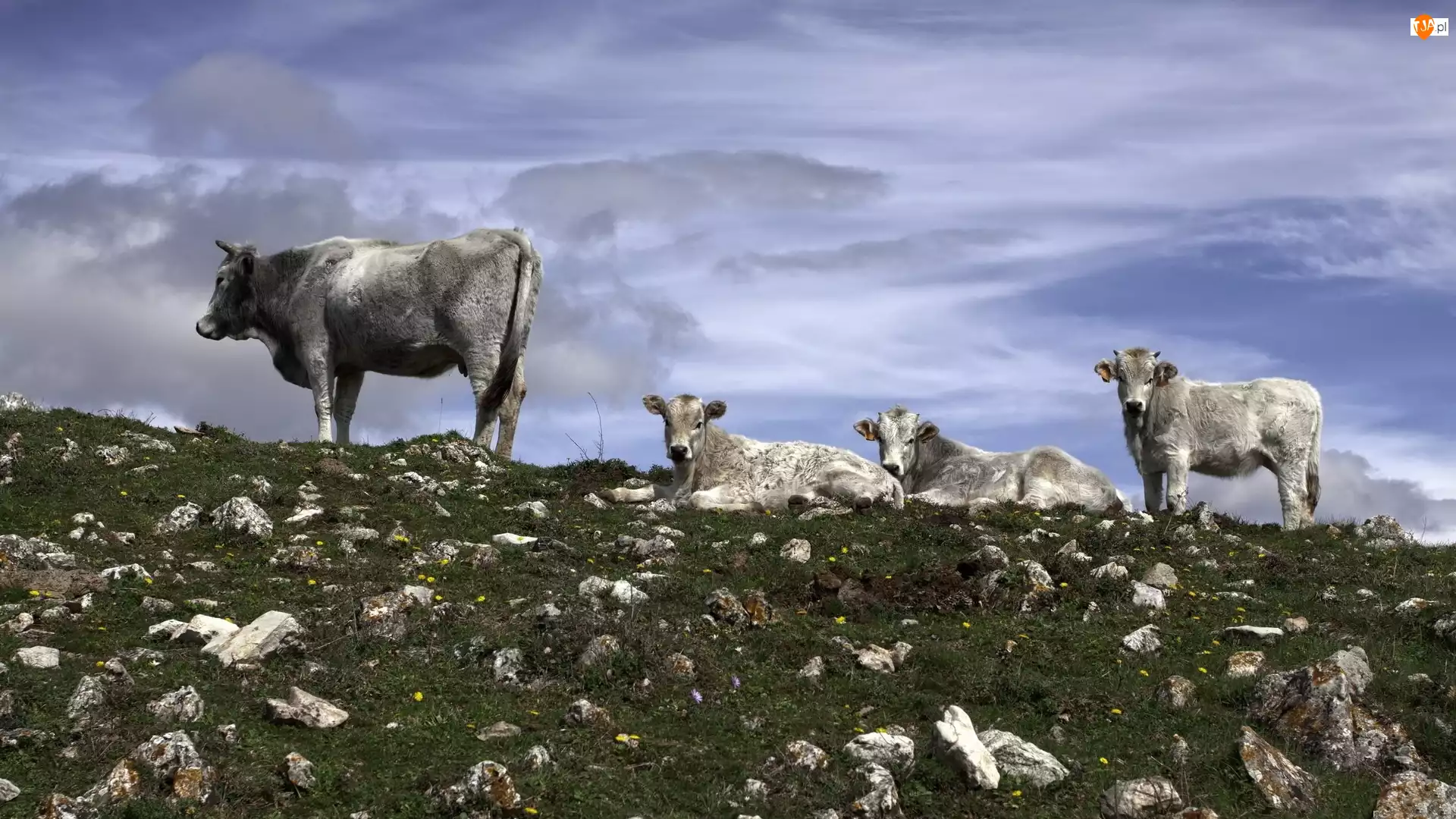 Kamienie, Cztery, Krowy, Szare, Pastwisko