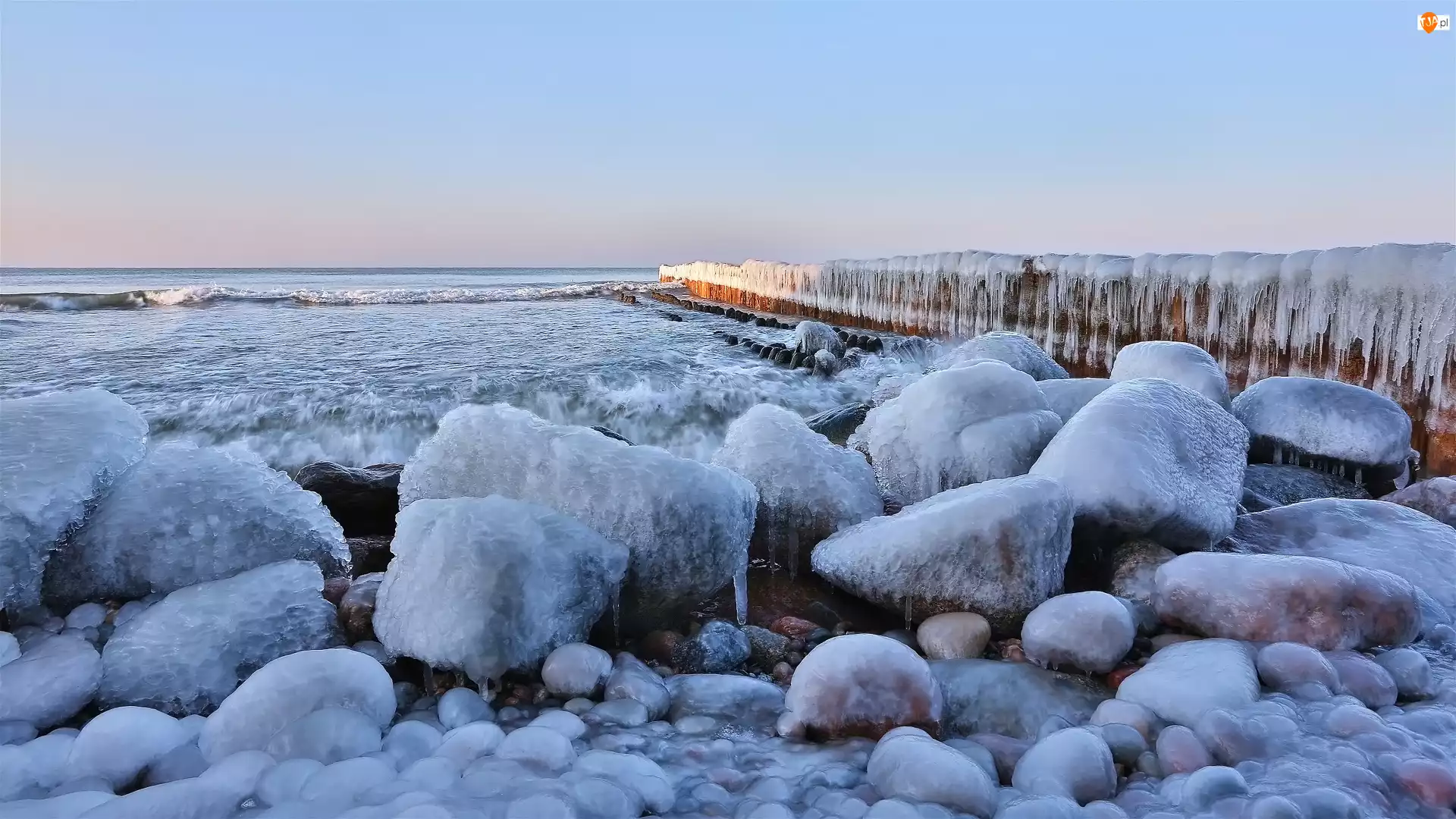 Kamienie, Falochron, Oblodzone, Zima, Morze