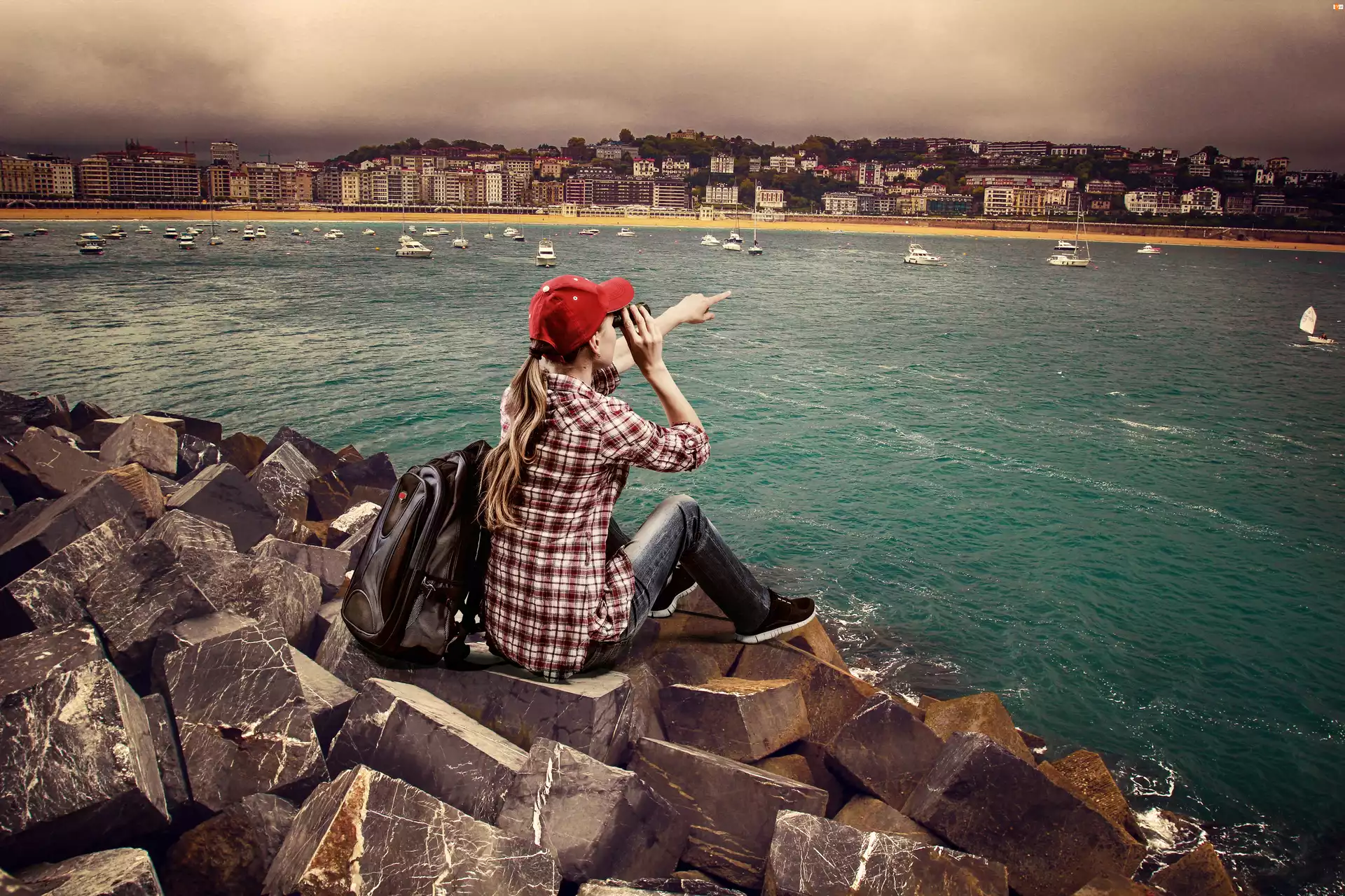 Kamienie, Motorówki, Dziewczyna, Miasto, Lornetka