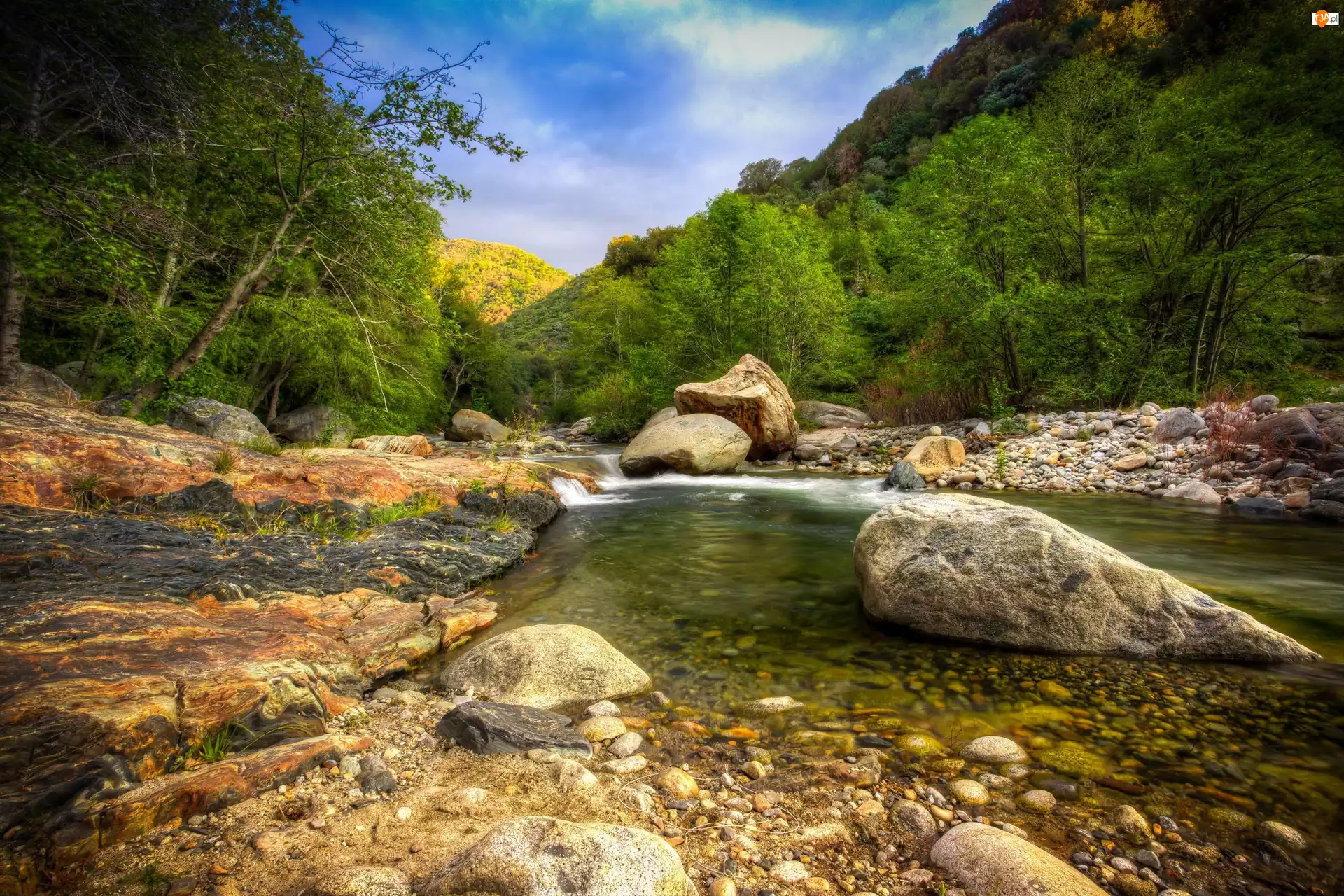 Park Narodowy Sekwoi, Kamienie, Stany Zjednoczone, Drzewa, Stan Kalifornia, Rzeka