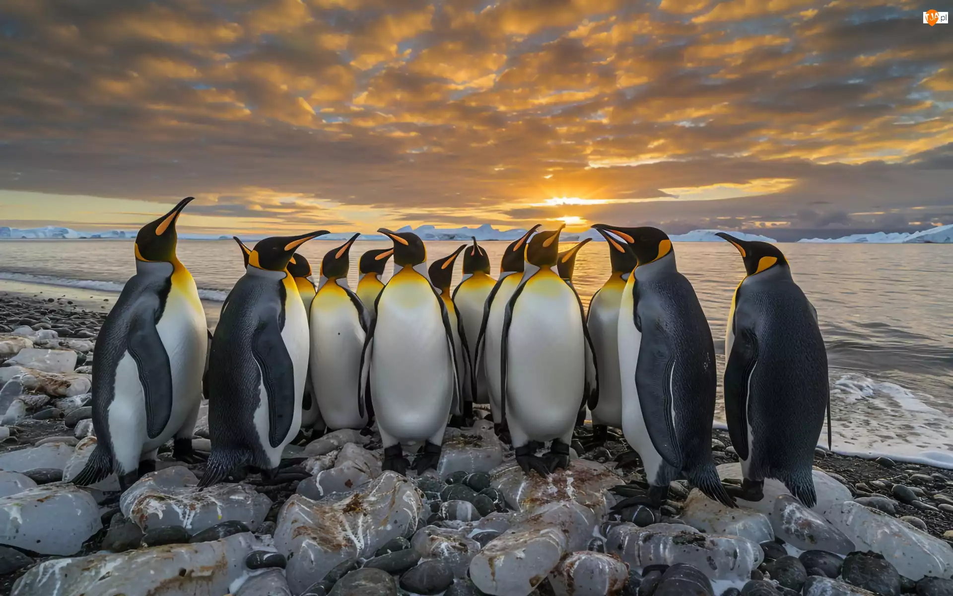 Kamienie, Zachód Słońca, Morze, Pingwiny cesars