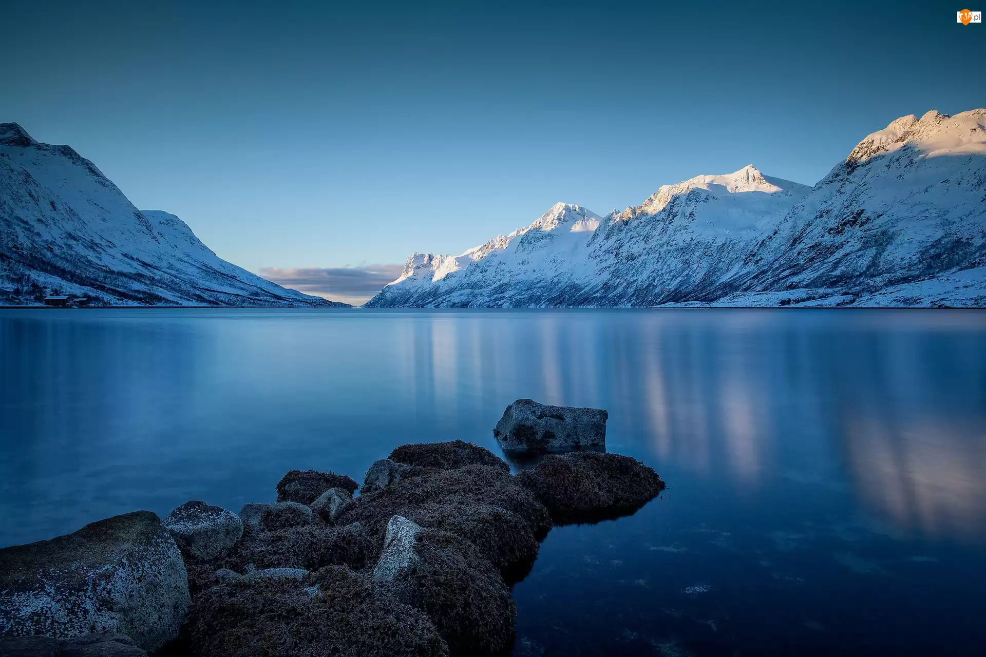 Kamienie, Zima, Góry, Śnieg, Jezioro