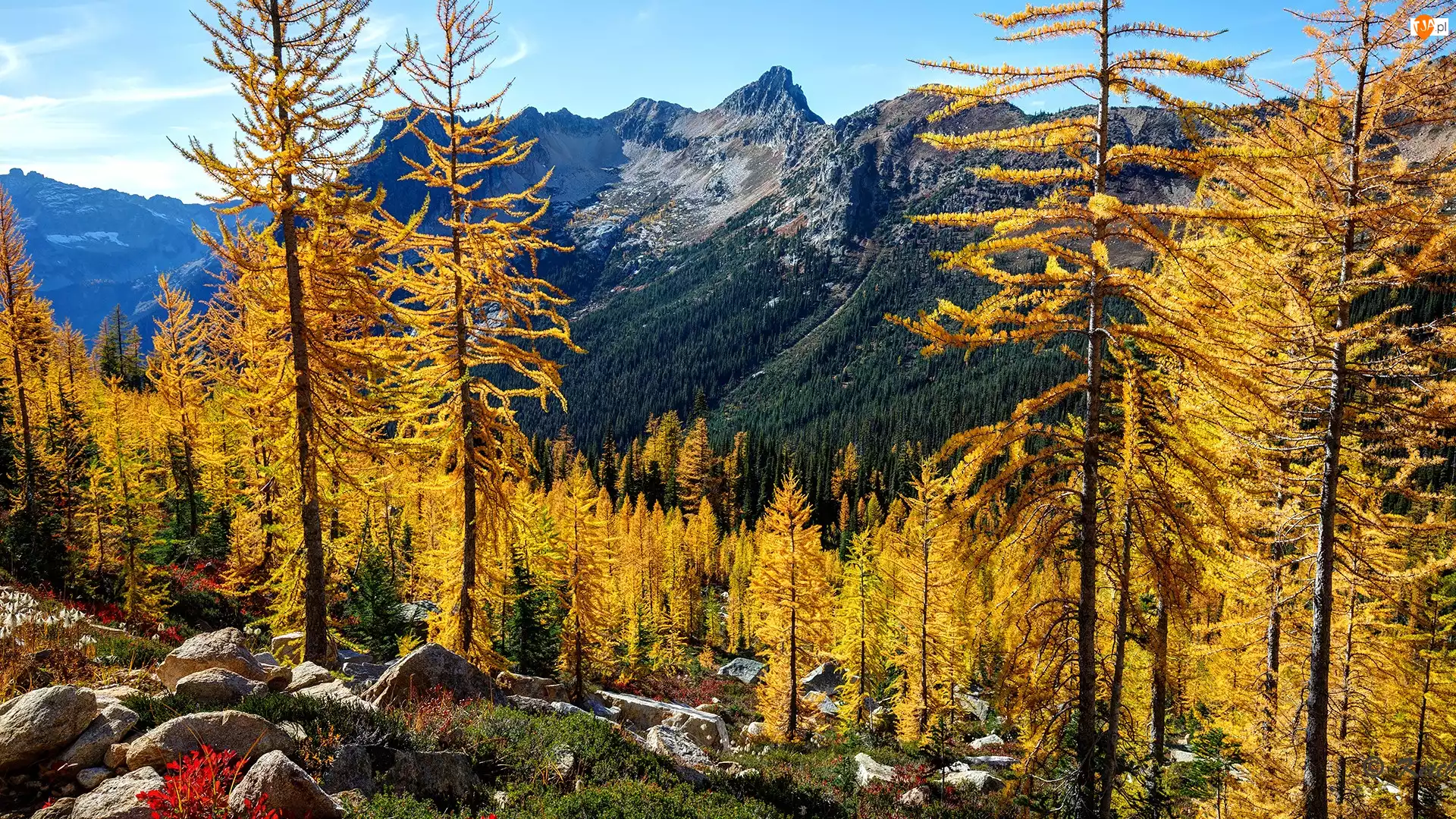 Kamienie, Żółte, Góry, Jesień, Drzewa