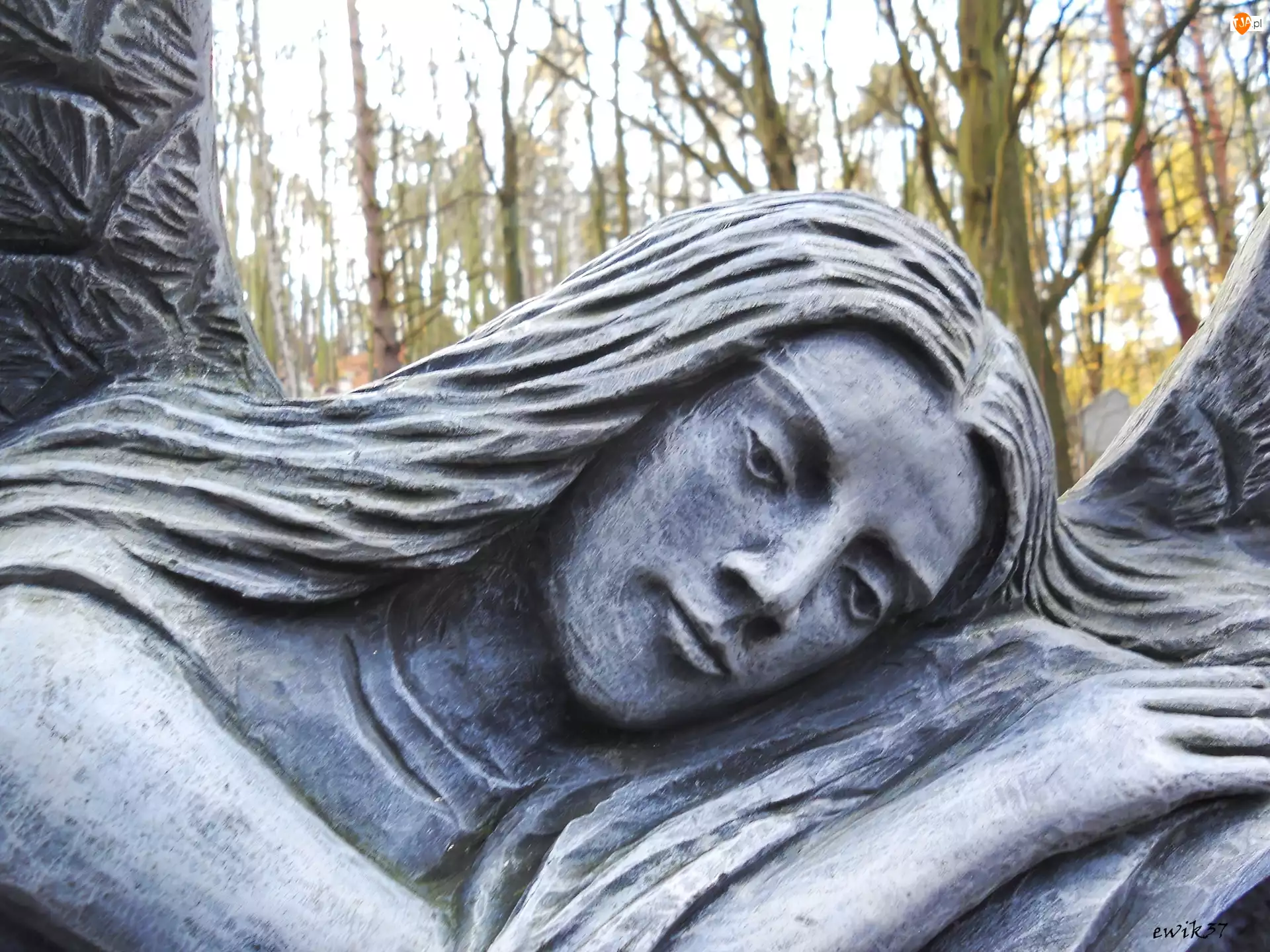 Kamienny, Drzewa, Anioł, Zamyślenie