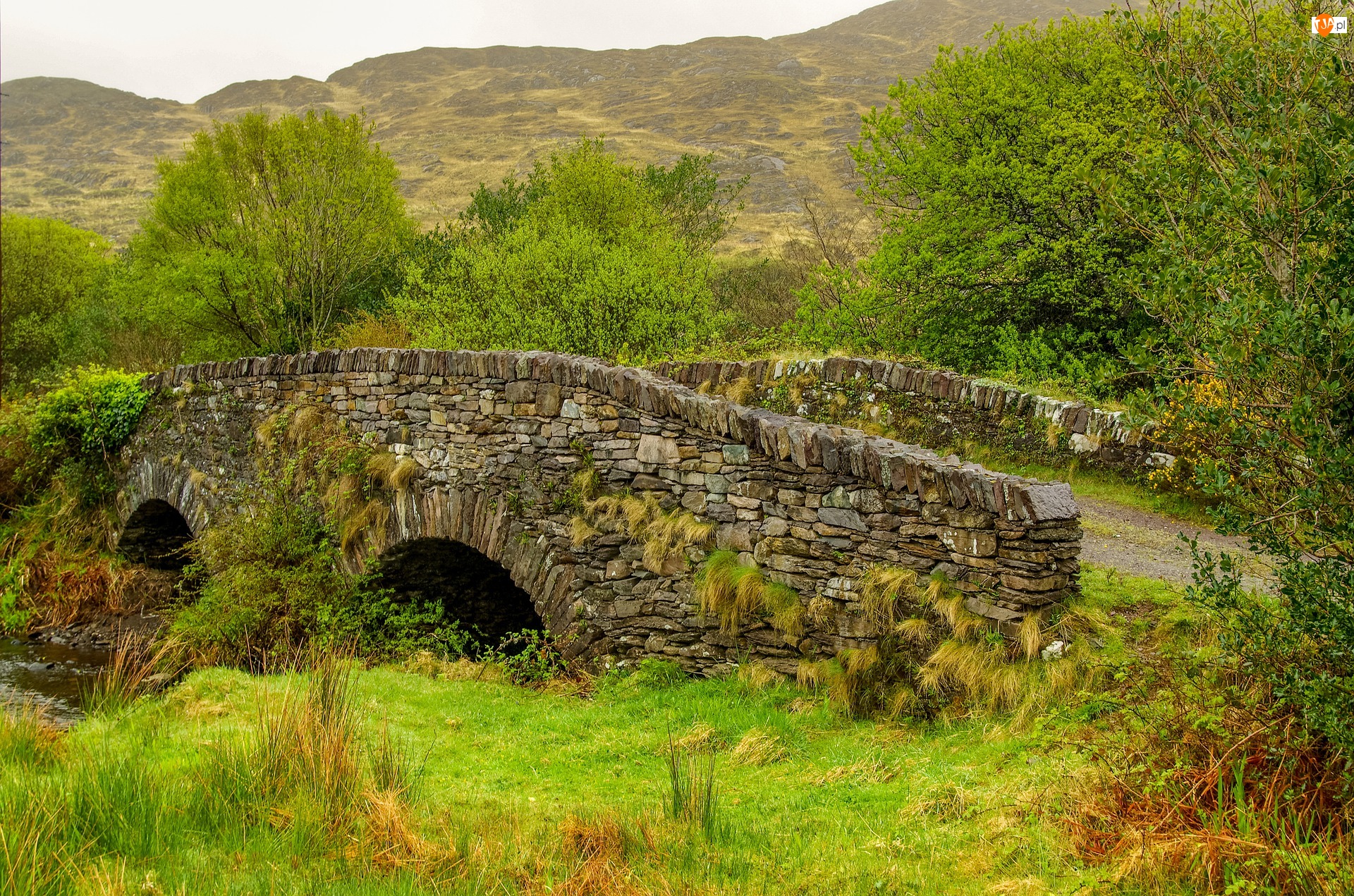 Trawa, Mostek, Krzewy, Drzewa, Kamienny