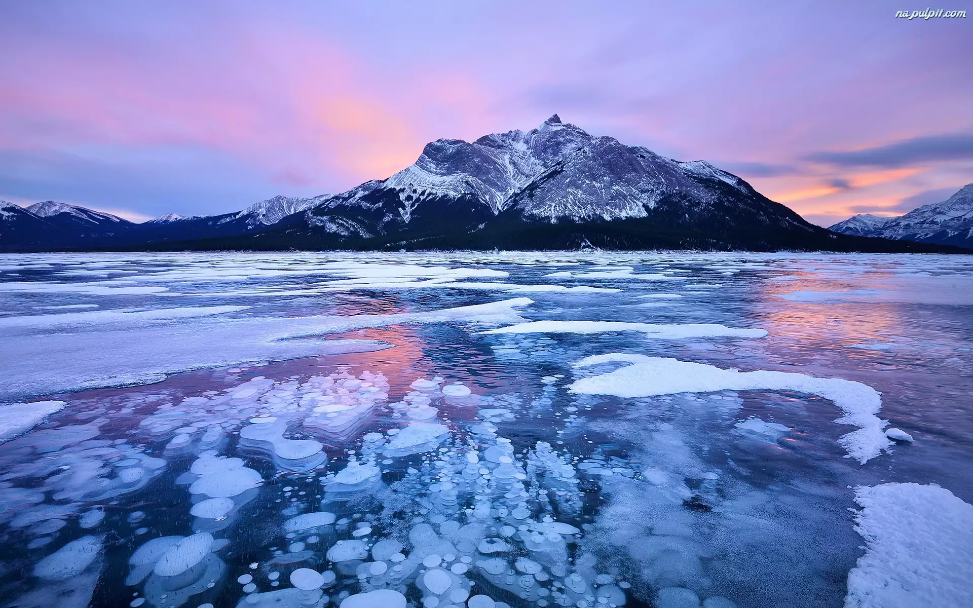 Kanada, Góry, Alberta, Abraham Lake, Lód, Canadian Rockies, Zamarznięte, Zima, Jezioro