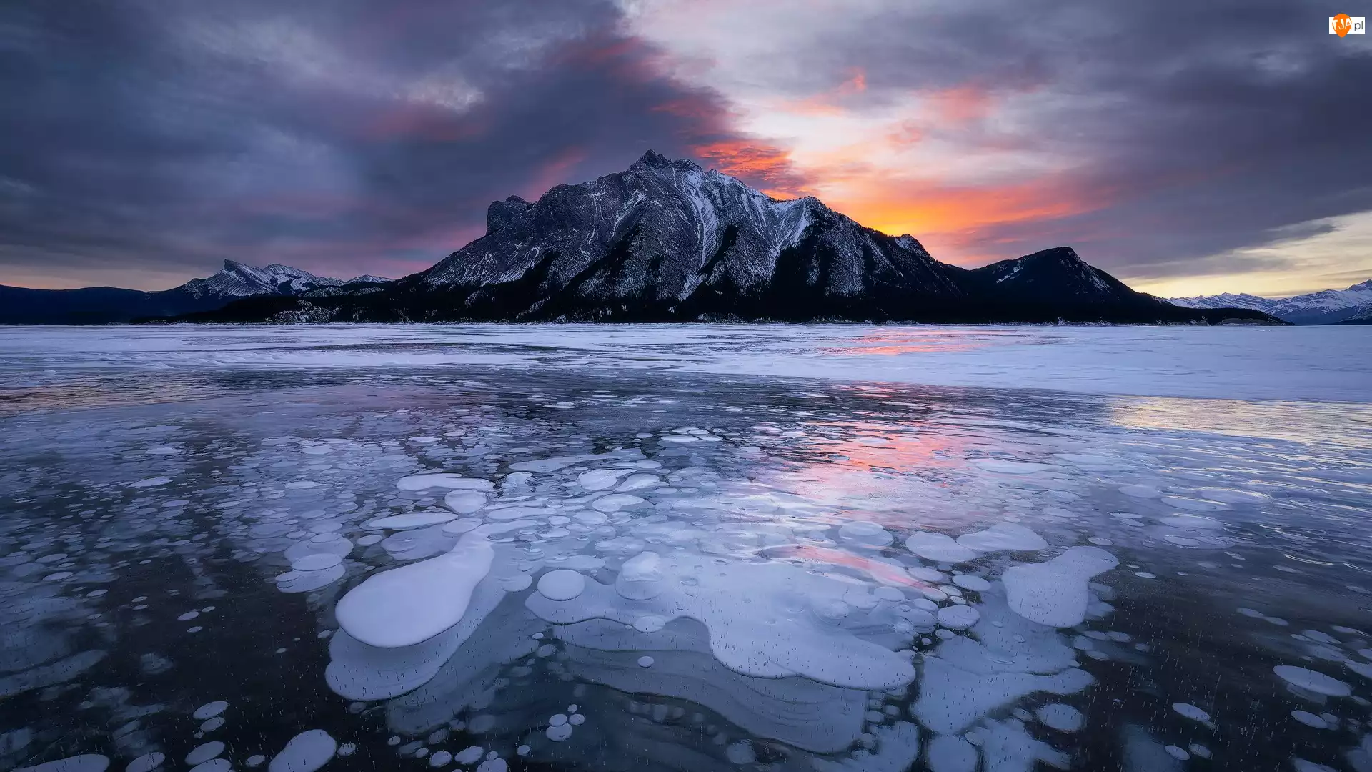 Kanada, Lód, Chmury, Abraham Lake, Canadian Rocki