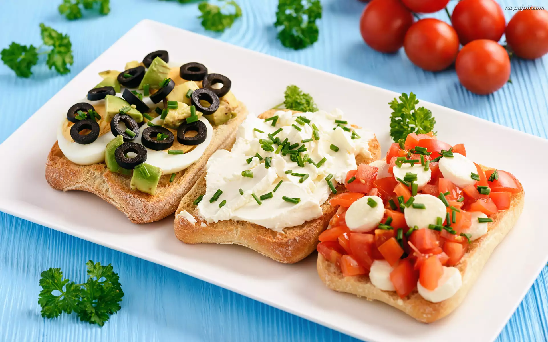 Ser, Kanapki, Nabiał, Szczypiorek, Pomidorki, Jajka, Pietruszka, Oliwki
