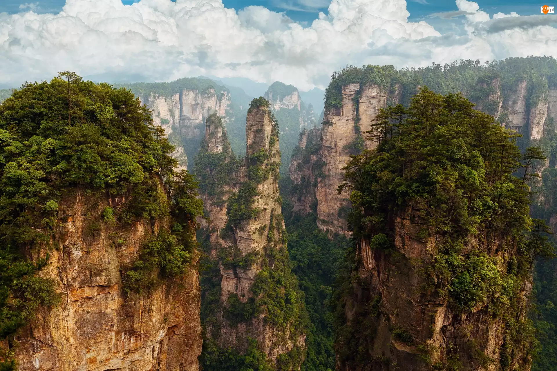 Prowincja Hunan, Chiny, Drzewa, Zhangjiajie National Forest Park, Skały, Góry