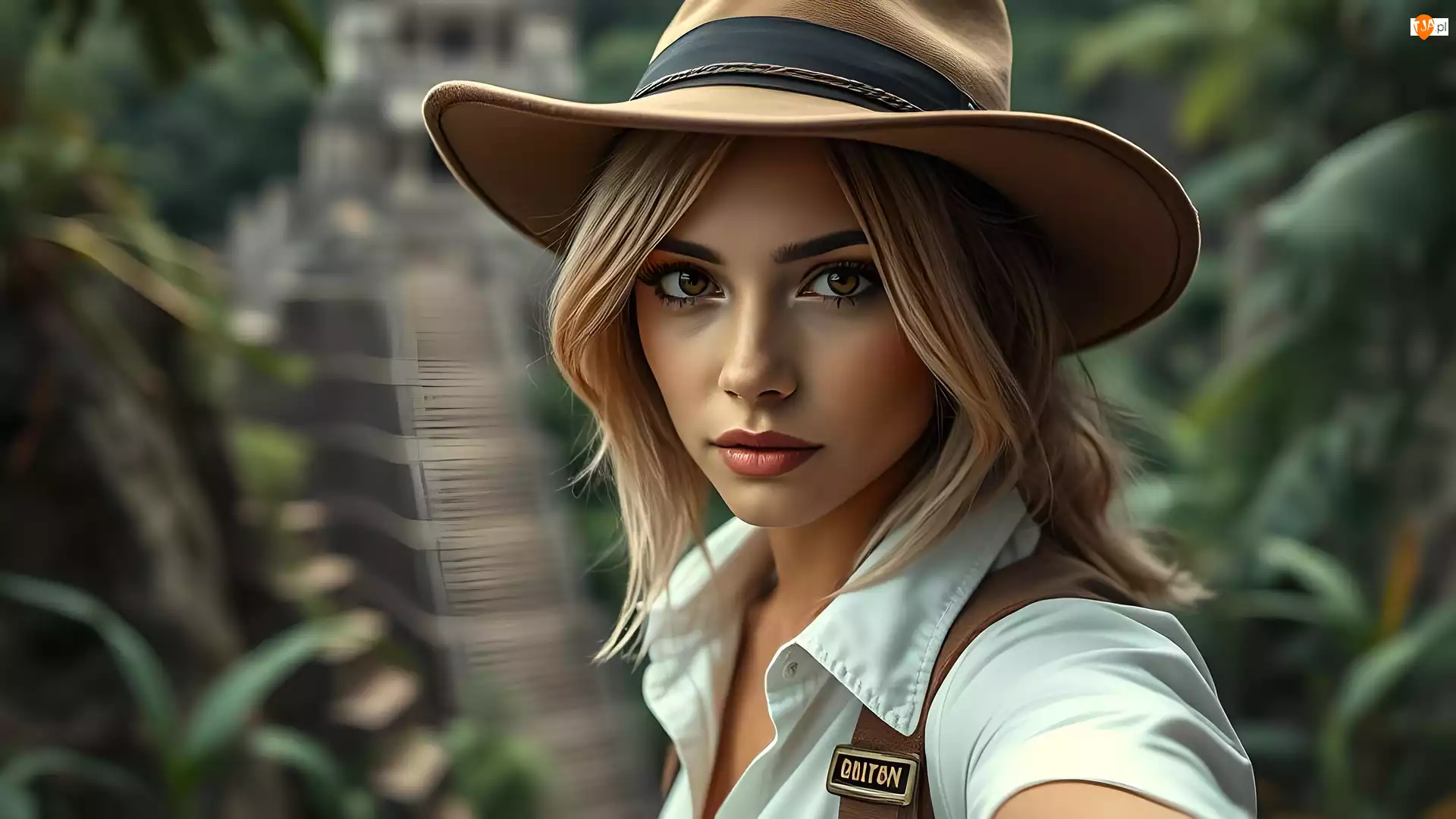 Kapelusz, Bluzka, Blondynka, Kobieta, Biała