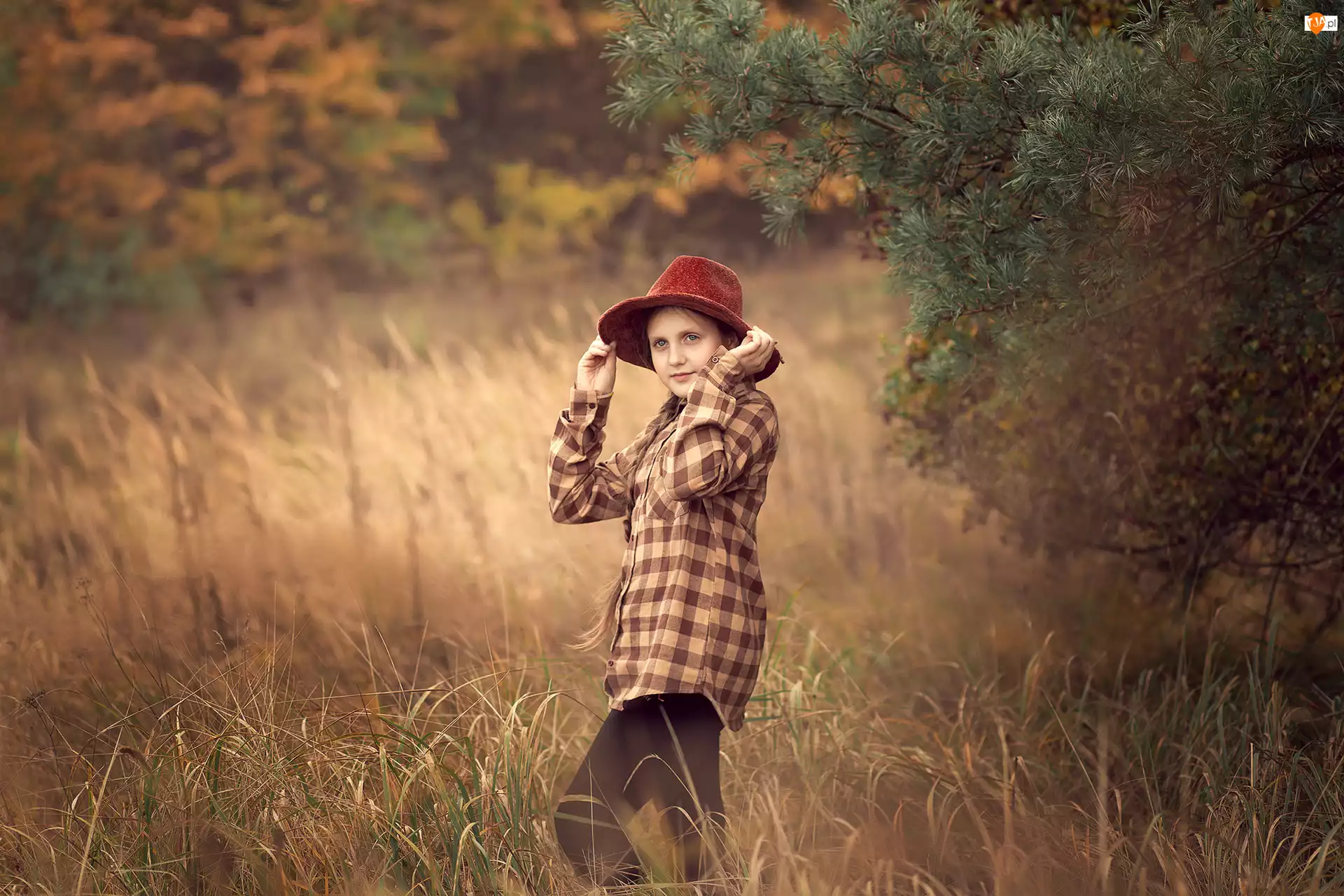 Kapelusz, Dziewczynka, Drzewa, Trawa