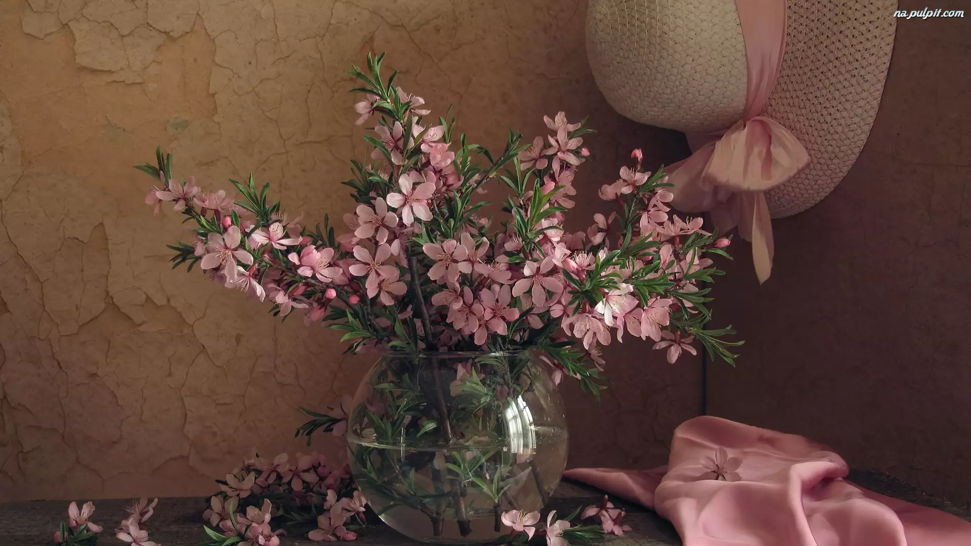Kapelusz, Kwiatuszki, Wazon, Różowe