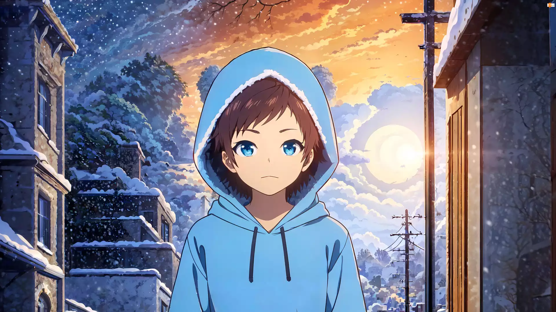Kaptur, Anime, Bluza, Postać, Śnieg
