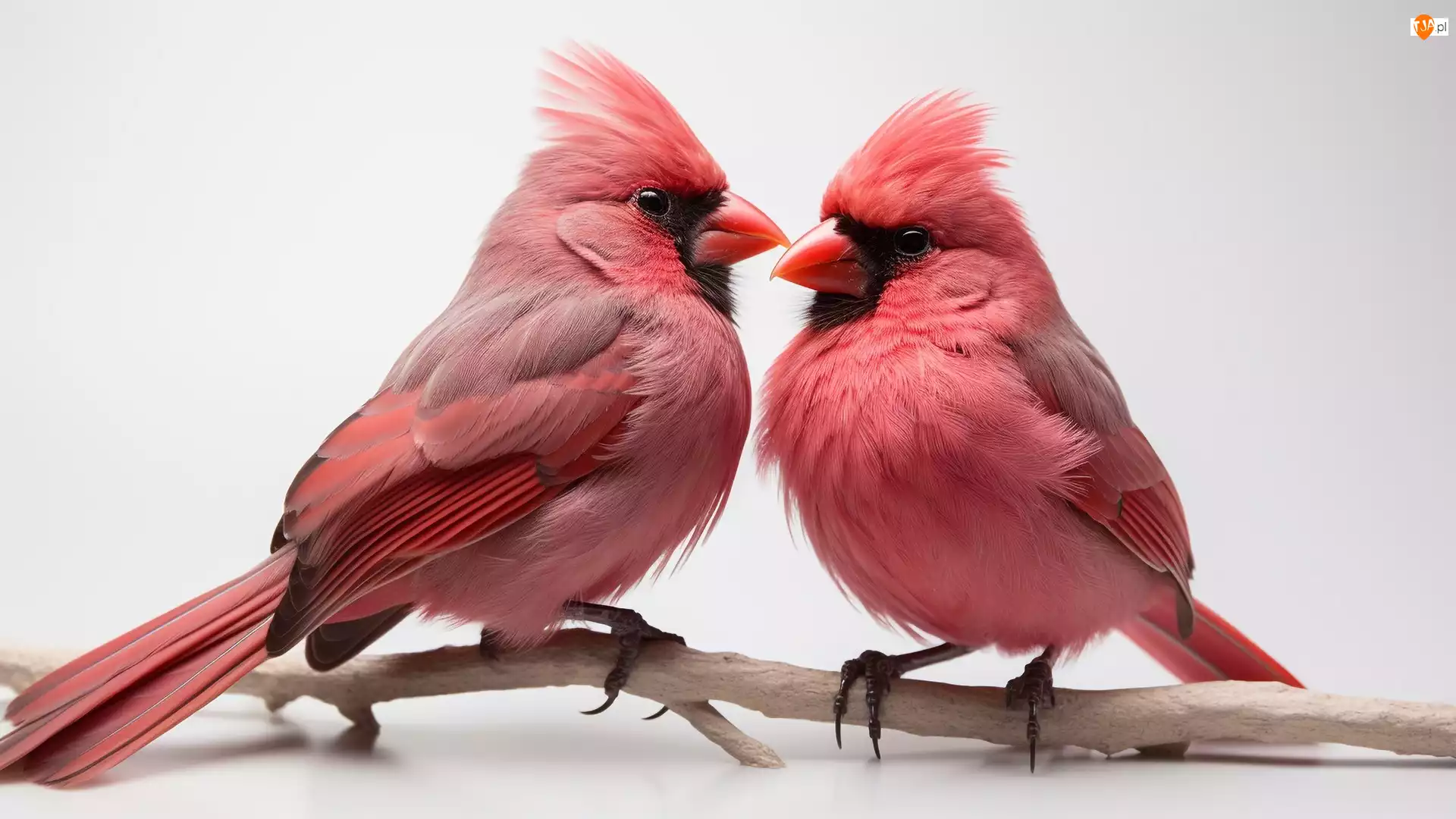 Kardynały szkarłatne, Drzewa Kardynał, Czerwone, Dwa, Konar