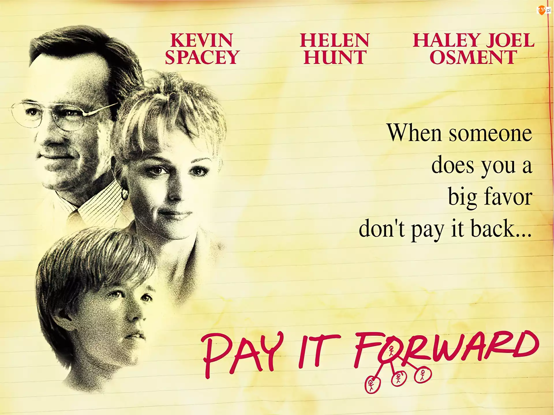 Haley Joel Osment, kartka, Kevin Spacey, Pay It Forward, Helen Hunt