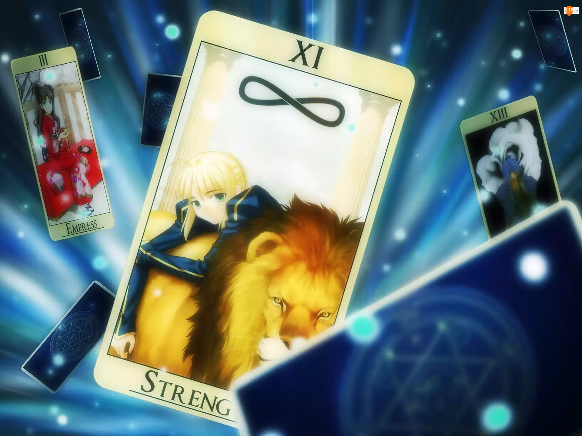 karty, Fate Stay Night, lew, dziewczyna, tarot