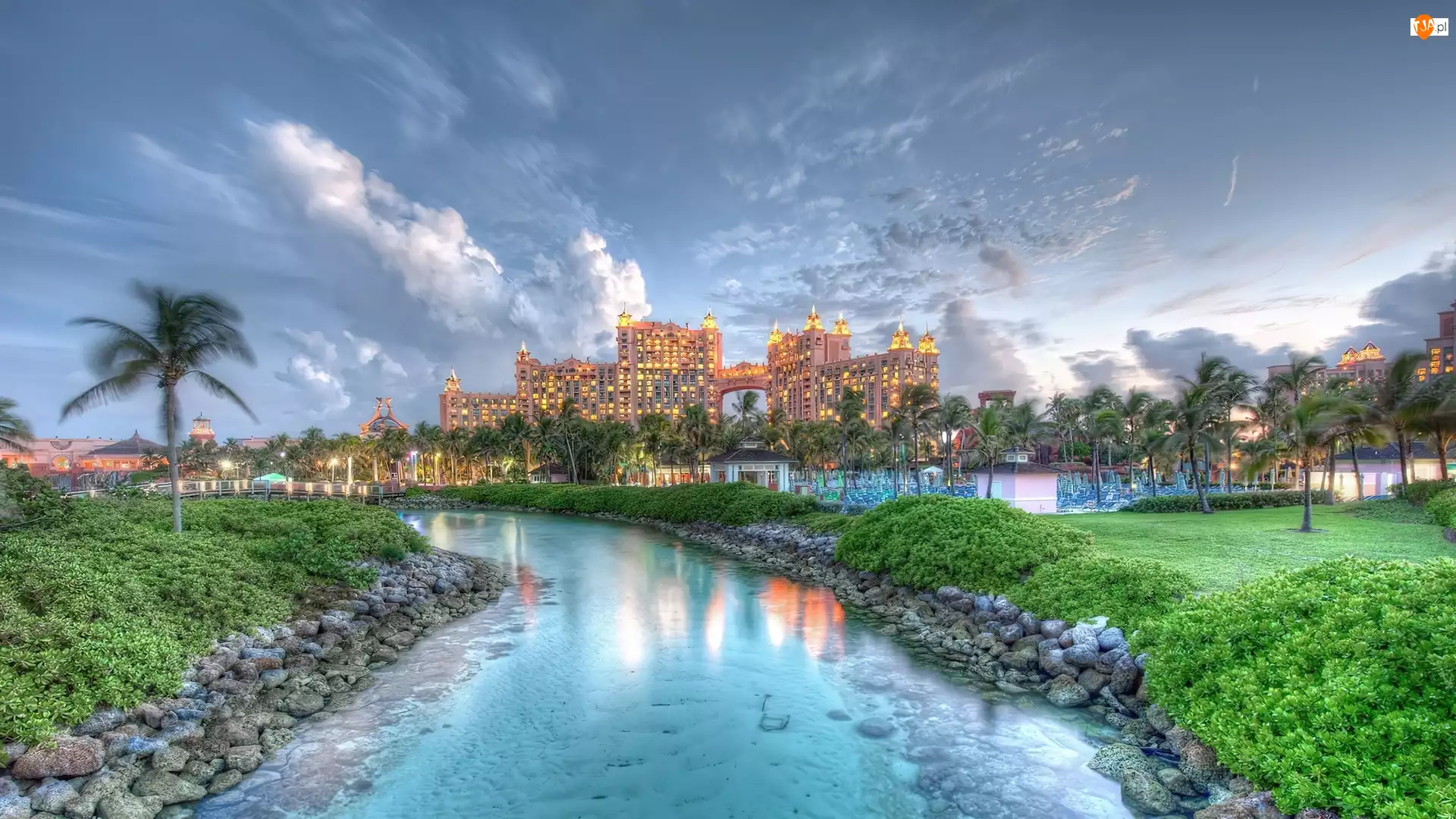 Kasyno, Palmy, Bahamy, Kamienie, Nassau, Rzeka