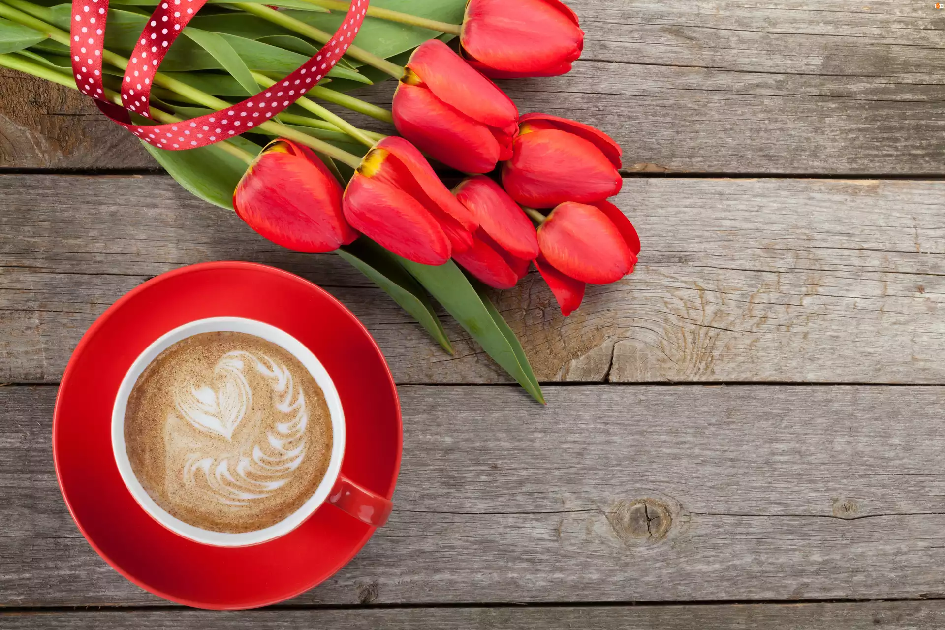 Filiżanka, Tulipany, Kawa, Czerwona