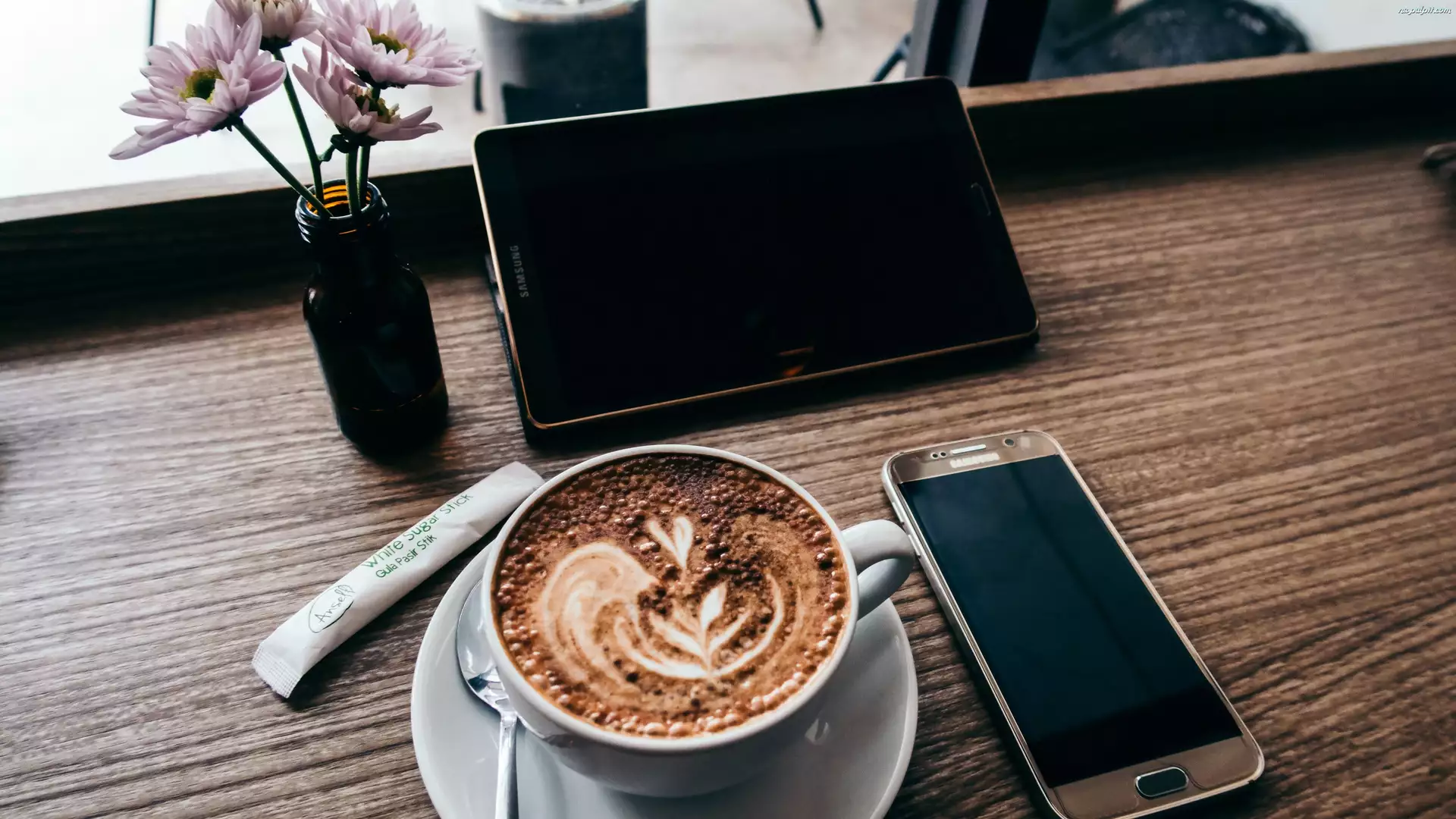 Smartfon, Kawa, Filiżanka, Laptop