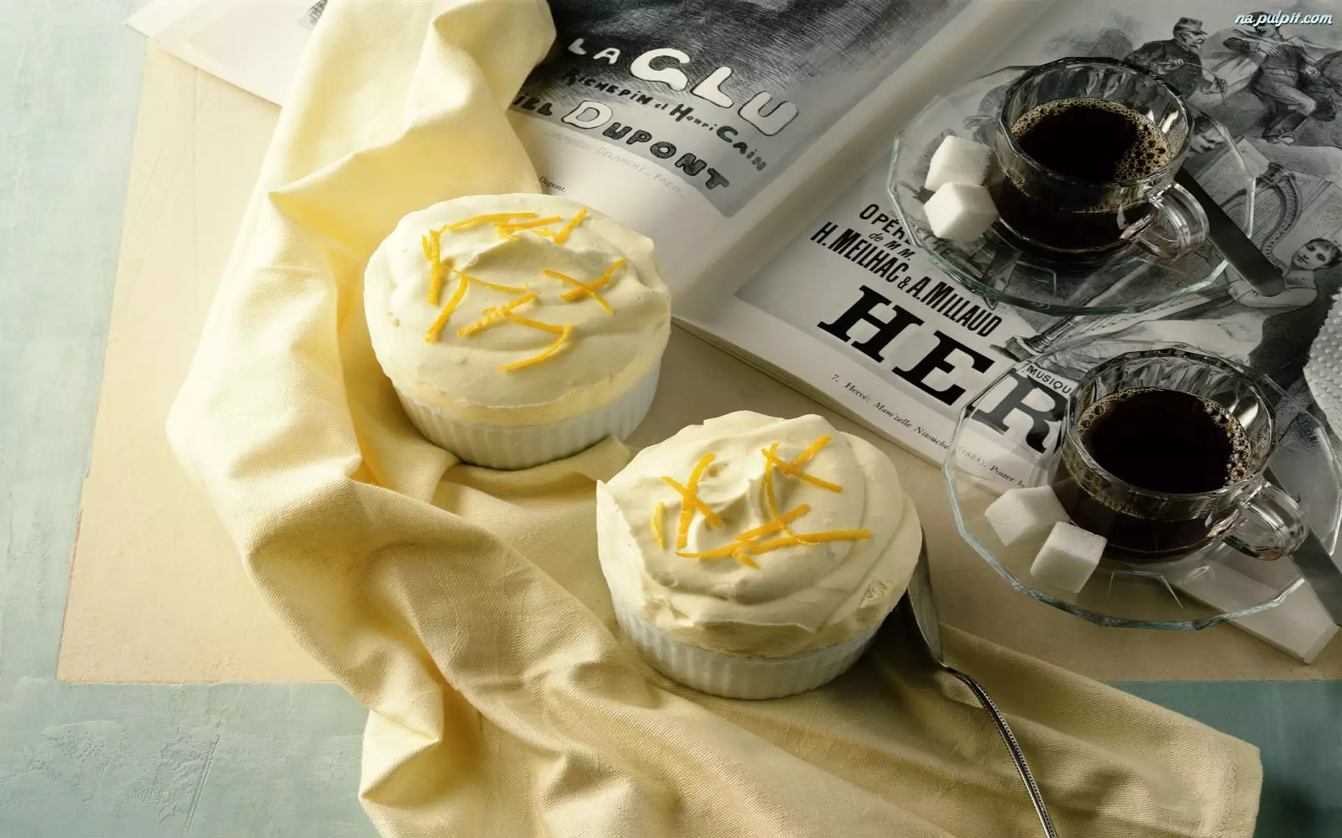 Filiżanki, Serweta, Kawa, Czasopismo, Dwie, Babeczki