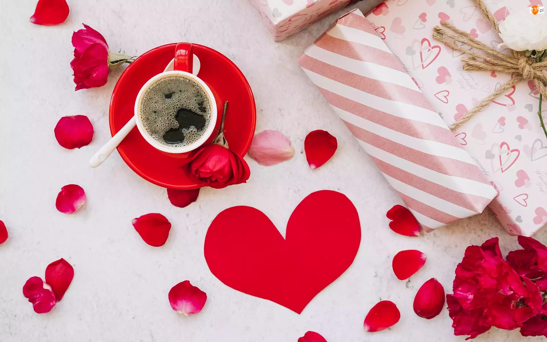 Prezenty, Walentynki, Róże, Kawa, Serce