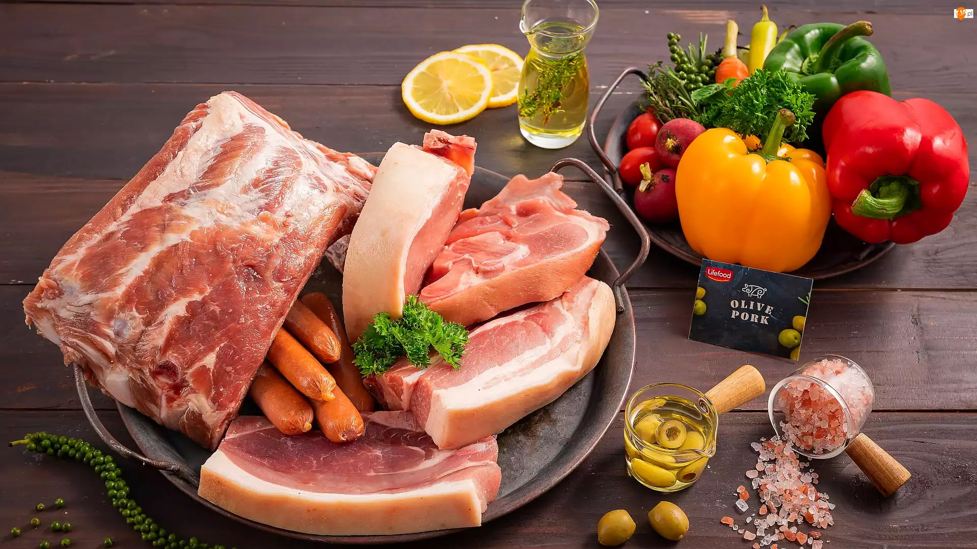 Oliwa, Mięso, Parówki, Sól, Kawałki, Papryka, Deski, Talerz