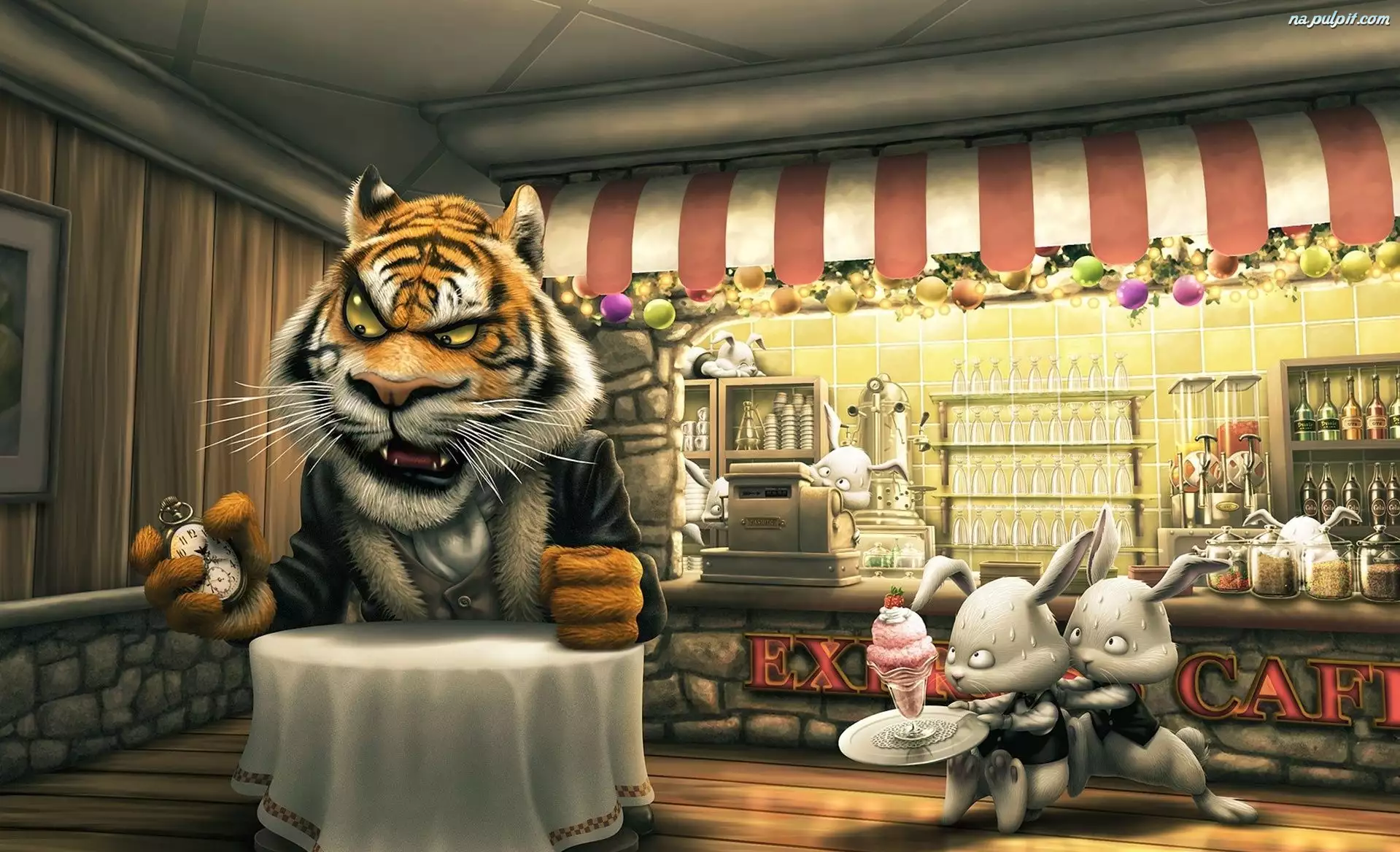 Kawiarnia, Króliczki, Zły, Tygrys