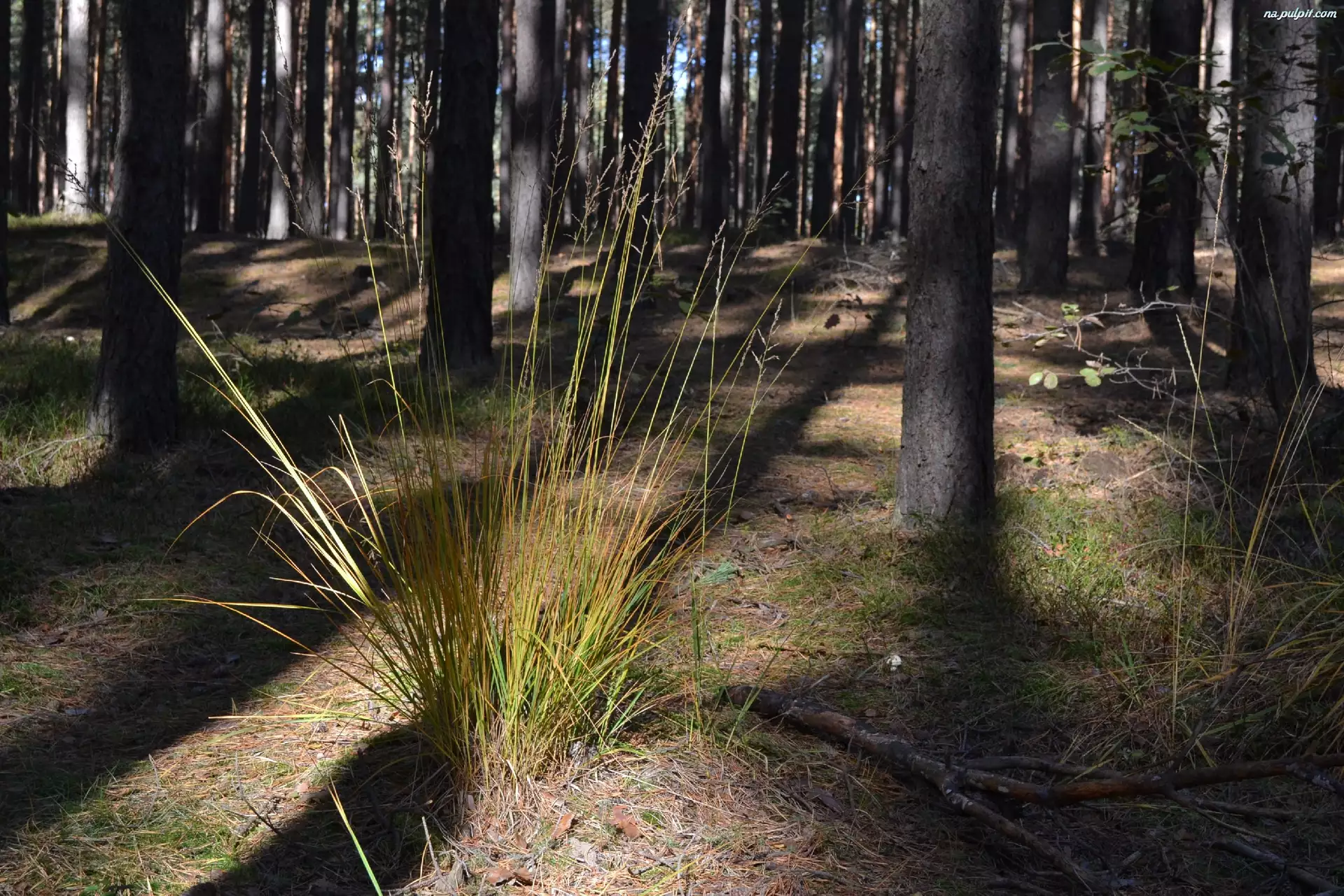 Sosny, Las, Trawy, Drzew, Kępa, Cienie