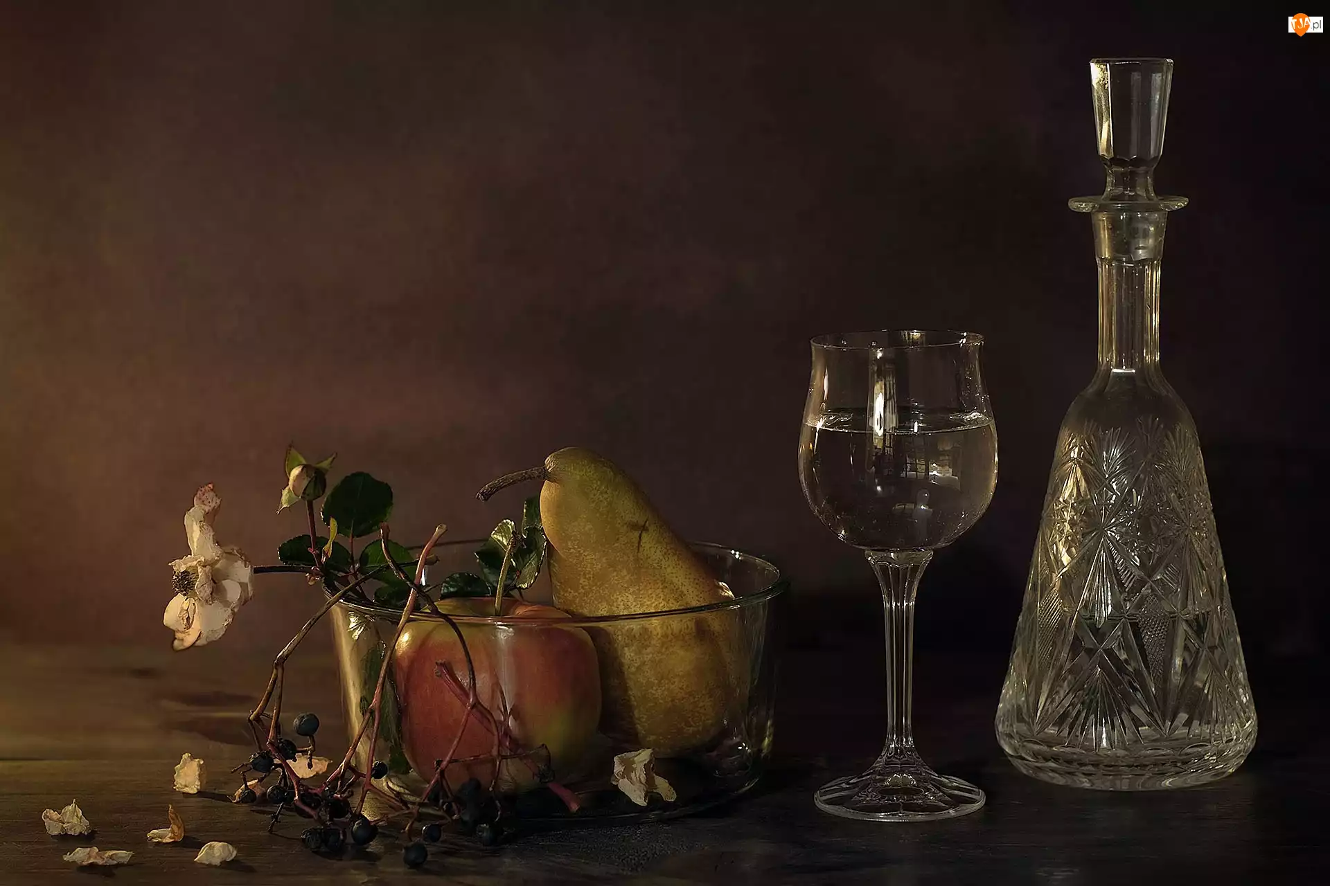 Kieliszek, Kompozycja, Jabłko, Gruszka, Karafka