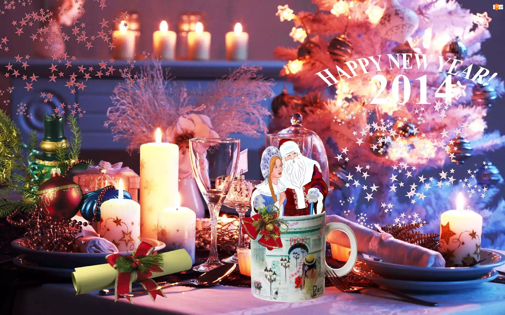 Kieliszki, 2014, Świece, Kompozycja, Szampan, Nowy Rok