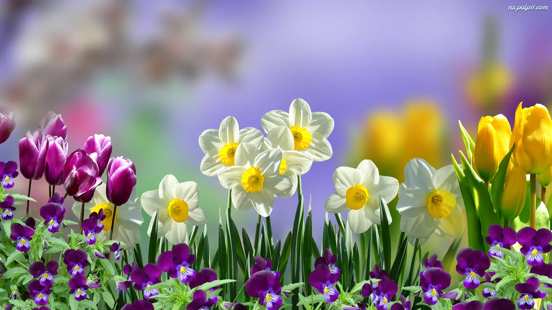 Bratki y, Kwiaty, Narcyzy, Tulipany