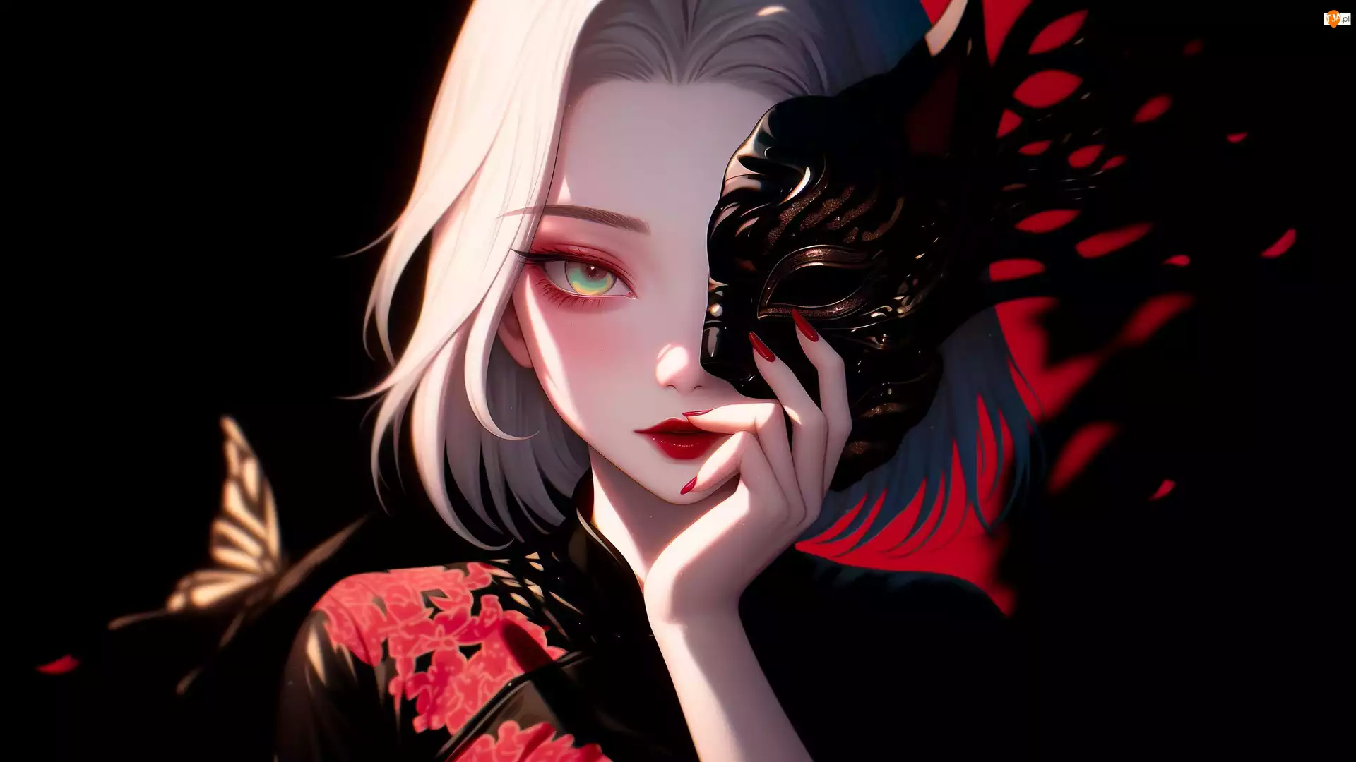 Kimono, Anime, Maska, Dziewczyna, Motyl