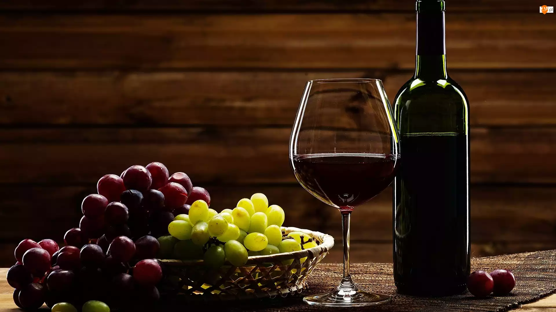Butelka, Kieliszek, Koszyk, Winogrona, Wino