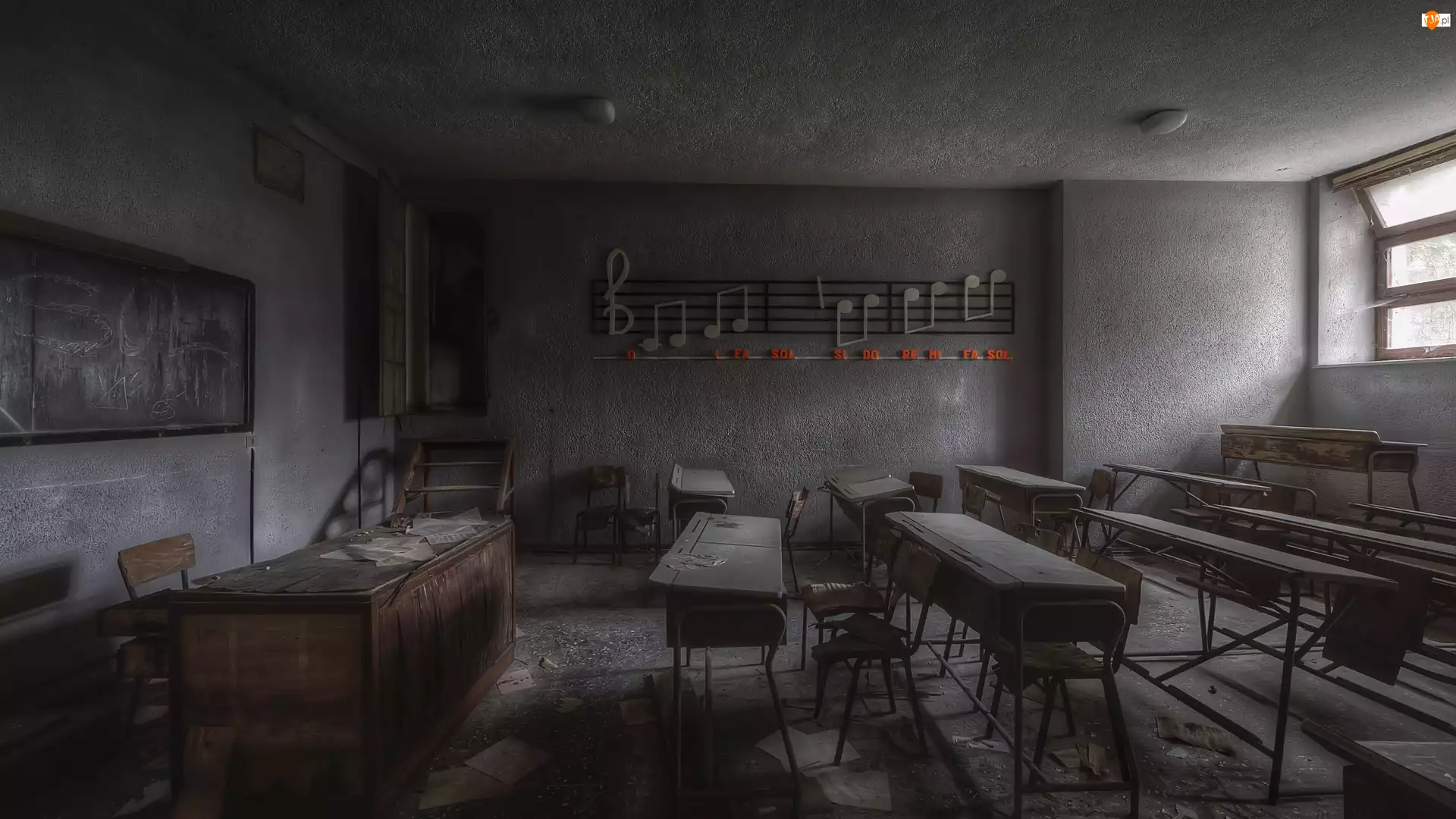 Sala, Zaniedbana, Ławki, Nuty, Klasa, Biurko