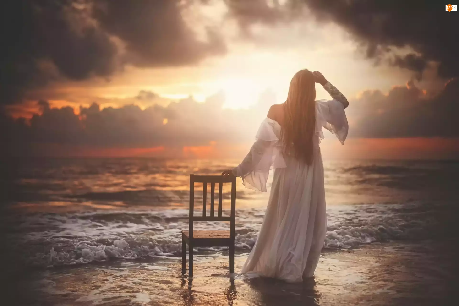 Kobieta, Chmury, Morze, Lato, Zachód Słońca, Fa