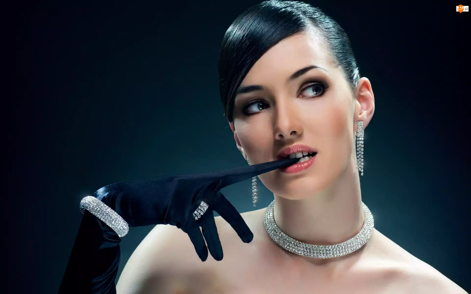 Diamenty, Kobieta, Makijaż, Biżuteria