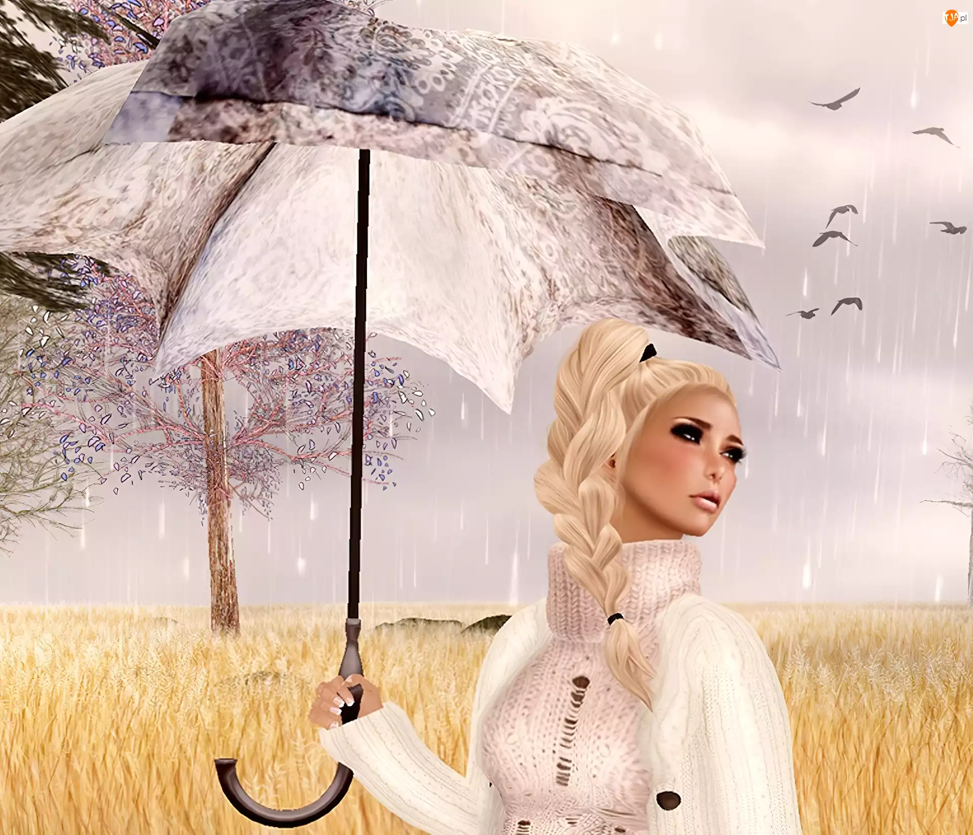 Grafika 2D, Kobieta, Parasol, Deszcz