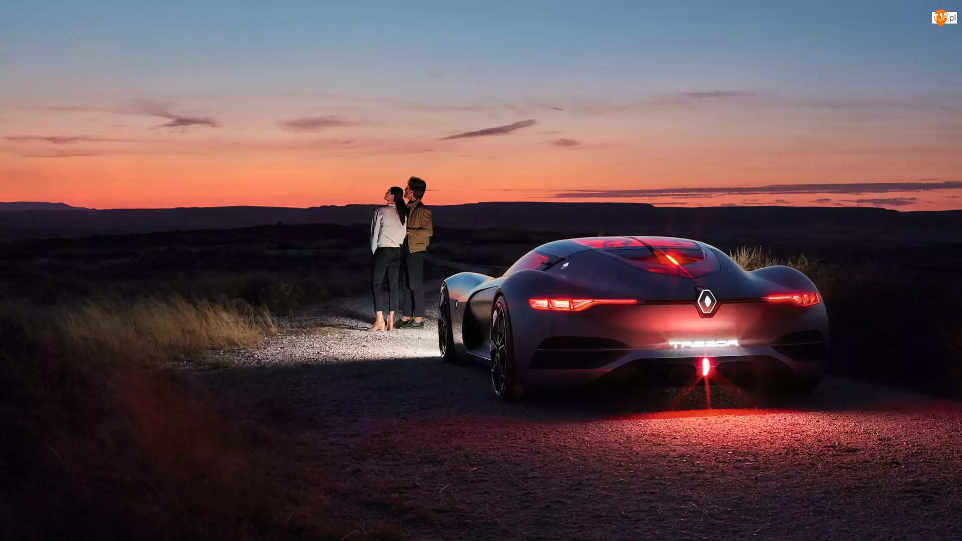 Kobieta i mężczyzna stojąc przy samochodzie Ren