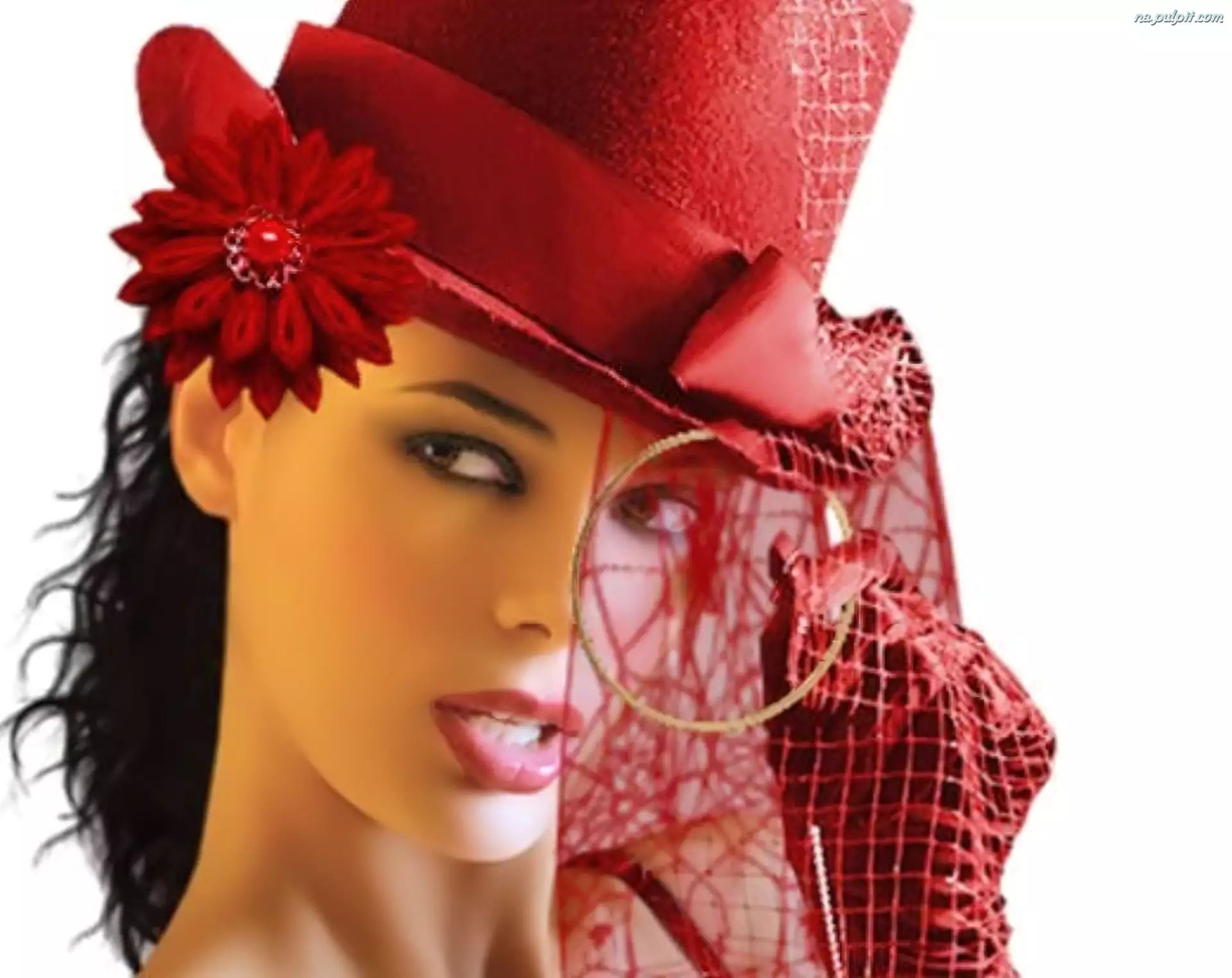 Kapelusz, Kobieta, Makijaż, Czerwony