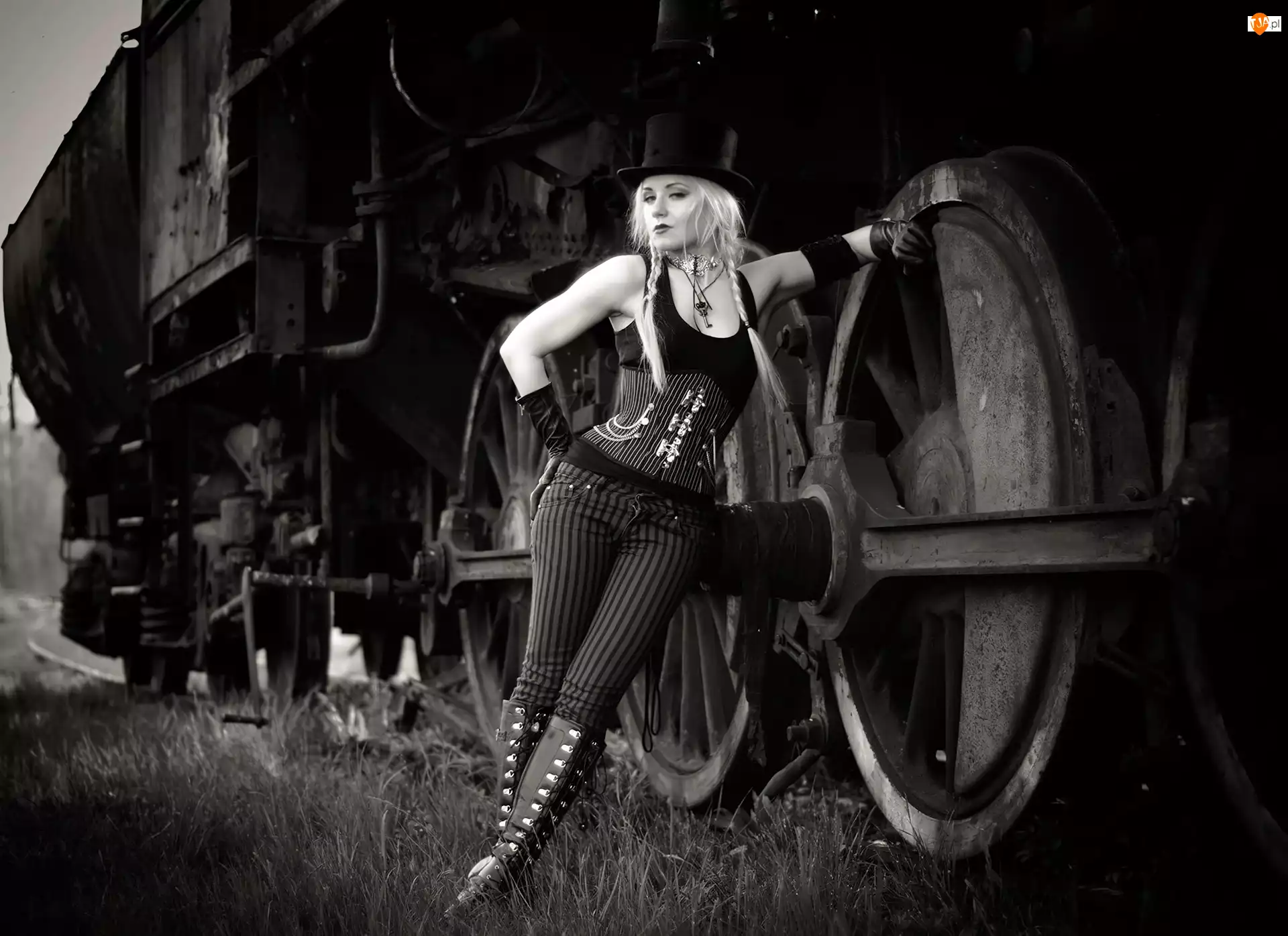 Kobieta, Kapelusz, Pociąg, Warkocze