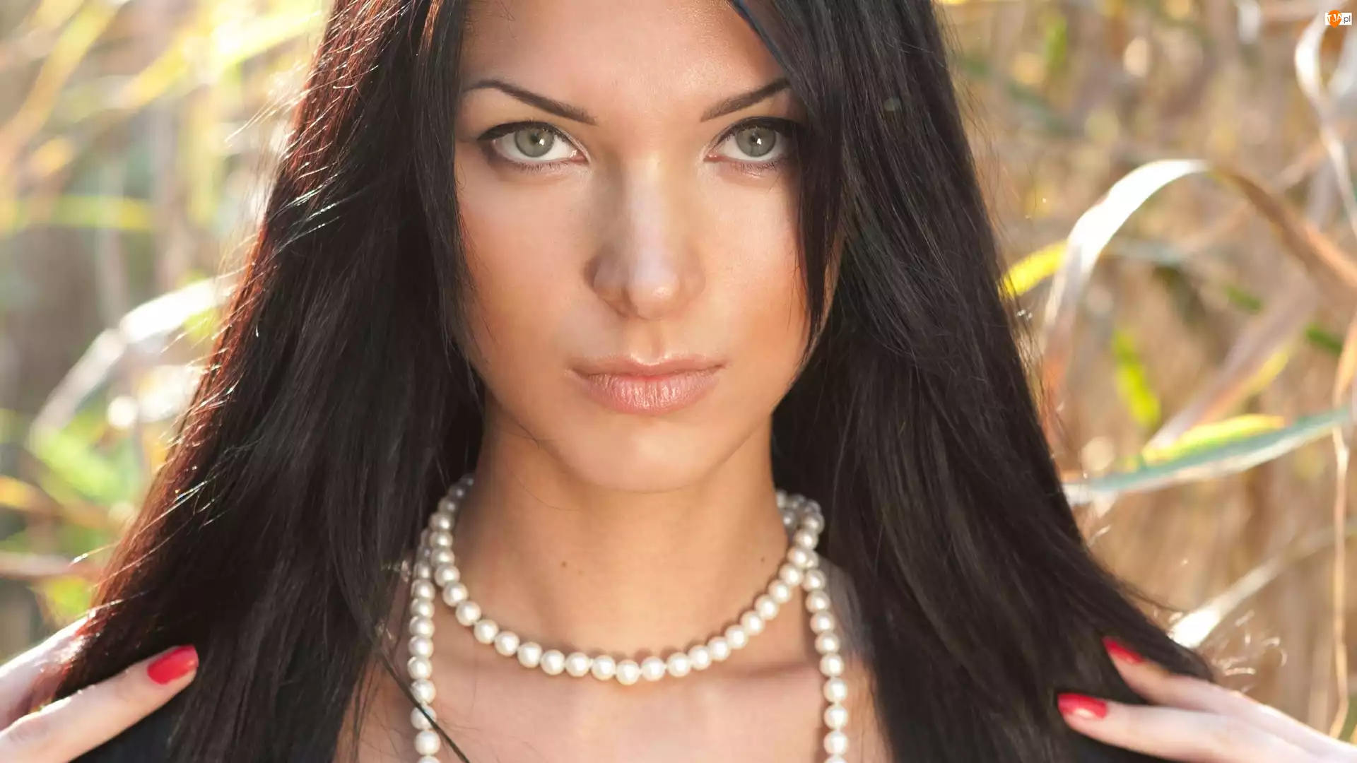 Kobieta, Korale, Brunetka, Twarz