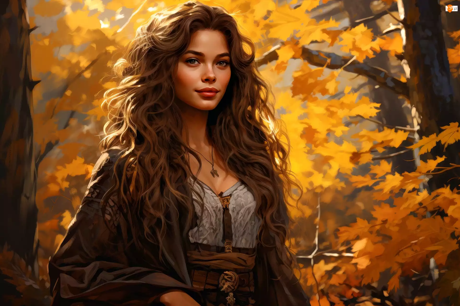 Kobieta, Kręcone, Grafika AI, Młoda, Las, Jesień, Włosy
