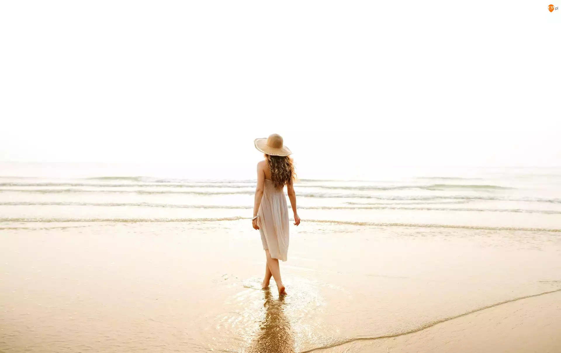 Morze, Piasek, Kapelusz, Kobieta, Plaża