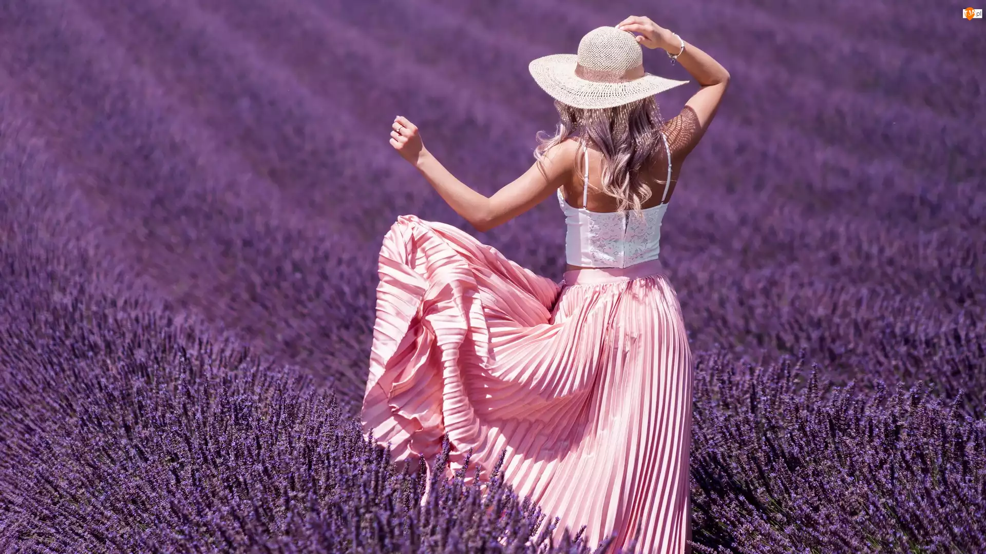 Kapelusz, Lawenda, Suknia, Kobieta, Pole