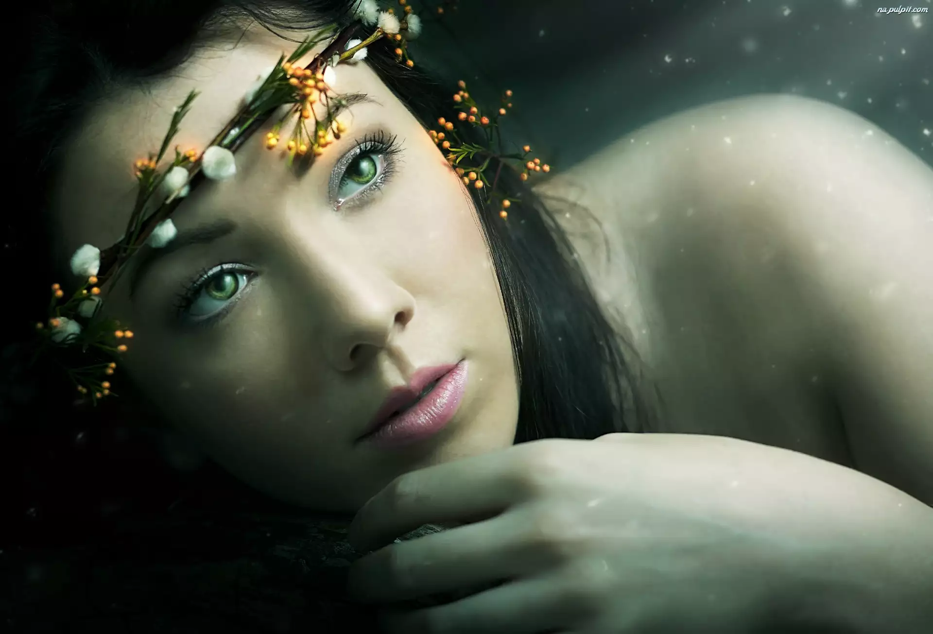 Kobieta, Oczy, Wianek, Zielone